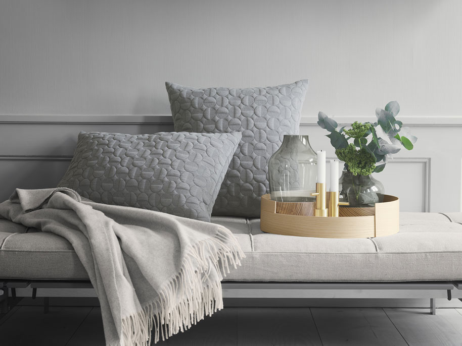 Ursprünglich basiert das Vertigo Kissen auf einem Stoffentwurf von Arne Jacobsen und wurde 2016 für die neue Accessoires-Kollektion Objects von Fritz Hansen neu aufgelegt.