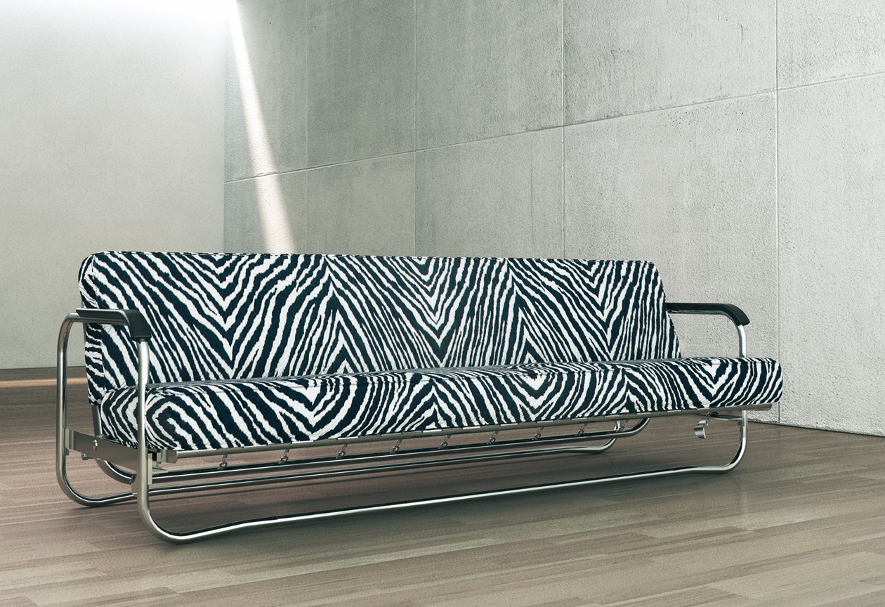 Der Entwurf des Bettsofas entstand im Frühjahr 1930 für die Ausstellung „Die Wohnung für das Existenzminimum” in Helsinki. Dabei standen Alvar Aalto vor der Aufgabe, praktische Möbel für besonders kleine Räume zu entwerfen. Die eine Überlegung war damals ein Klappbett, die andere Idee war ein Sofa, das in ein normales Bett verwandelt werden kann. Alvar Aalto entschied sich für ein Möbel mit der Doppelfunktion. Mit einem Handgriff konnte das Stahlrohrsofa zu einem Bett umfunktioniert werden. Nach 75 Jahren legte wb form (wb form ist heute das Schwesterunternehmen von Wohnbedarf, das Kürzel wb steht für die Initialen) das Bettsofa 63 verbunden mit dem ikonischen Zebrabezug von Alvar Aalto wieder auf.