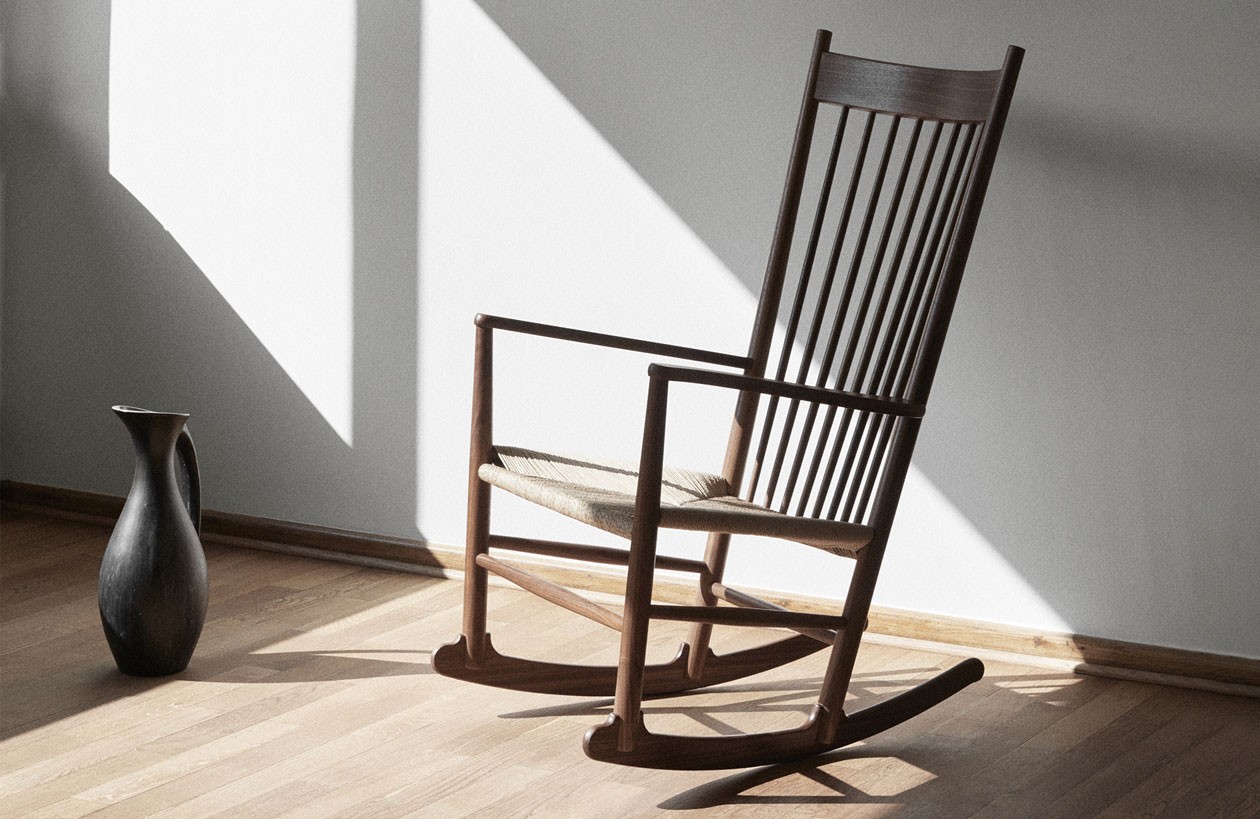 Zum 75jährigen Entwurfsjubiläum erscheint der Schaukelstuhl J16 von Hans Wegner als Sonderedition in Nussbaum.
