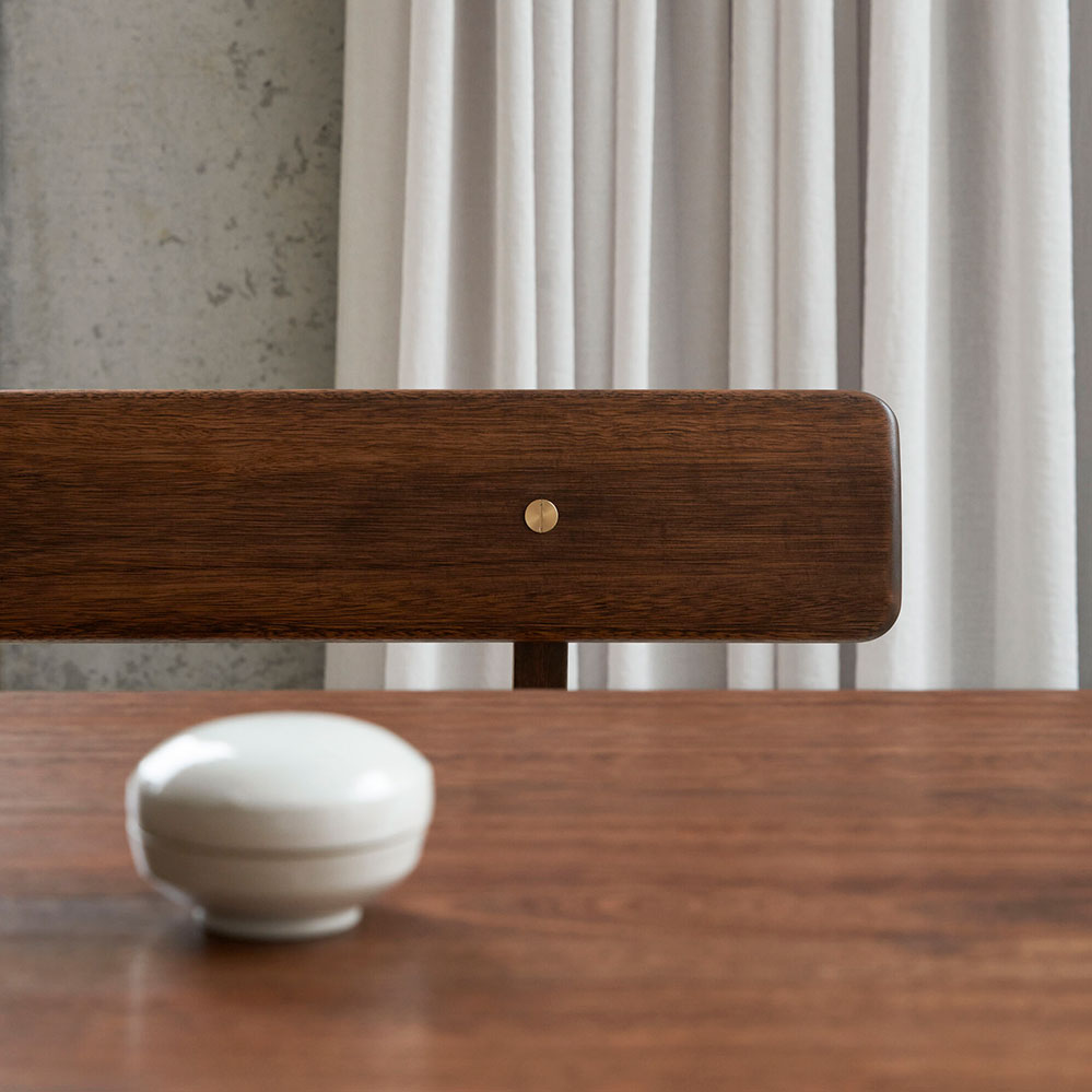 Die Asserbo Bank mit Rückenlehne ist Bestandteil einer Sitzgruppe, die Børge Mogensen 1961 für sein Ferienhaus im dänischen Asserbo entwarf. 2022 wurden diese Möbel von Carl Hansen in dunklen Eukalyptusholz wieder aufgelegt, 2023 folgte eine Version in Eiche. Die kleine Möbelserie besteht aus dem Esstisch und zwei verschiedenen Bänken (eine mit Rückenlehne). Dieser Entwurf mit den Messingappikationen begeisterte uns bei den 3 Days of Design dieses Jahr in Kopenhagen auf Anhieb. Erhältlich ist die Sitzbank wahlweise mit ohne den Sitzkissen.