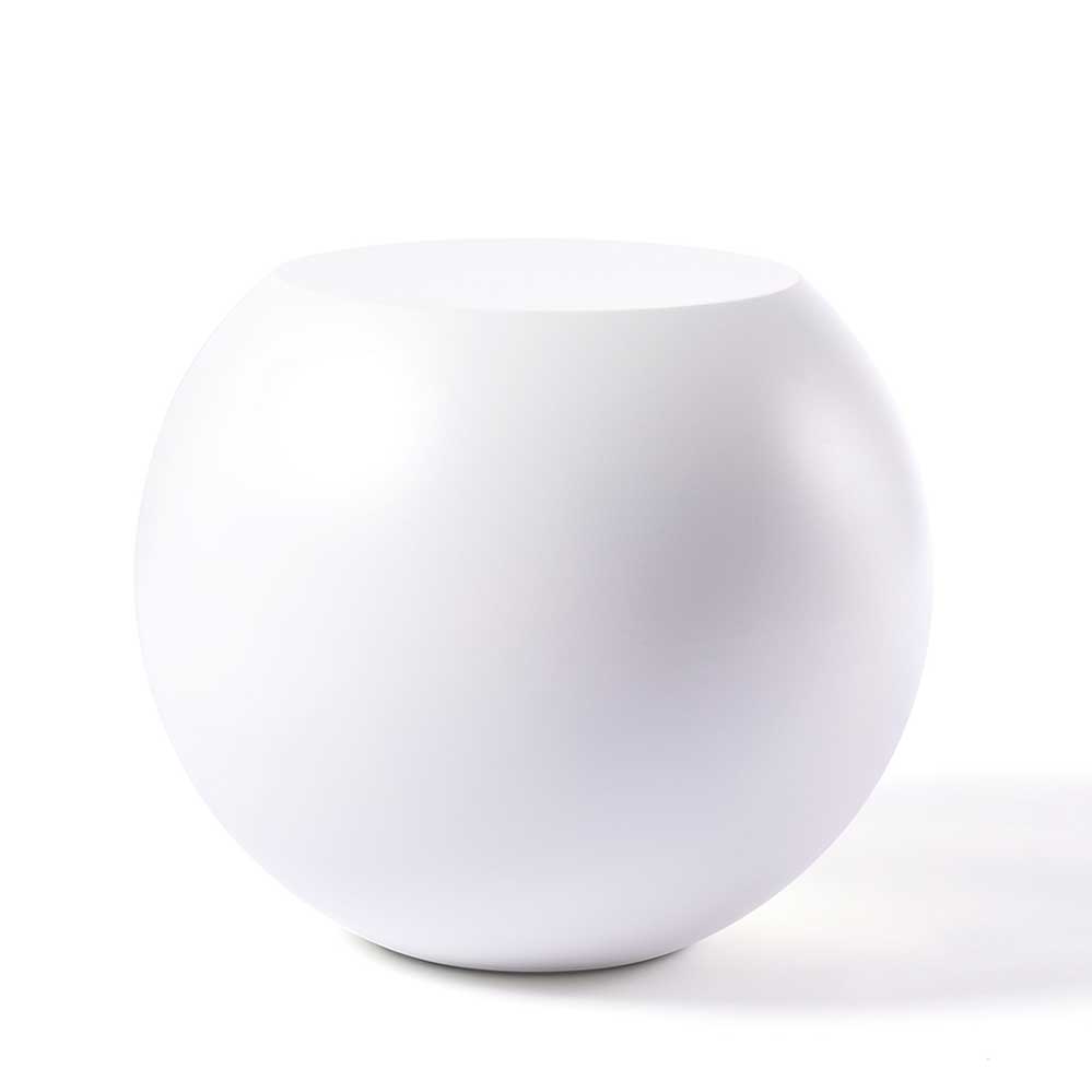 Unter dem Namen LIDO präsentierte Cappellini zur Möbelmesse 2023 in Mailand eine umfangreiche Outdoor-Kollektion in den drei Grundfarben Weiß (RAL 9010), Violettblau (RAL 5000) und Oxidrot (RAL 3009). Dazu zählt auch der Bong Beistelltisch von 2004 Giulio Cappellini aus glasfaserverstärktem Kunstharz. Optisch wirkt der Tisch mit der abgeflachten Tischplatte wie eine überdimensionale Kugel.