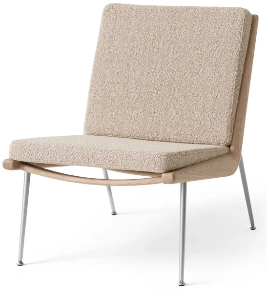 Der Boomerang Chair HM1 aus dem Jahr 1956 ist ein Entwurf des dänischen Design- und Architekturbüros Hvidt & Mølgaard und wurde 2020 von &tradition im Rahmen der Hvidt & Mølgaard Kollektion neu aufgelegt. Interessanterweise wurde aber bereits einige Jahre früher ein sehr ähnlicher, gleichnamiger Sessel von dem deutschen Designer Hans Mitzlaff für die Firma Soloform Eugen Schmidt entworfen, inwieweit Peter Hvidt und Orla Mølgaard Nielsen diesen Entwurf kannten, ist Spekulation. Bekannt in der Designwelt wurde auf jeden Fall die dänische Produktion von France & Son, der Boomerang gilt heute als dänischer Designklassiker. Erhältlich ist der Boomerang Sessel bei Markanto als Standard i dem Stoff n der &tradition Quickship, weitere Stoffe und Farben gerne auf Anfrage.