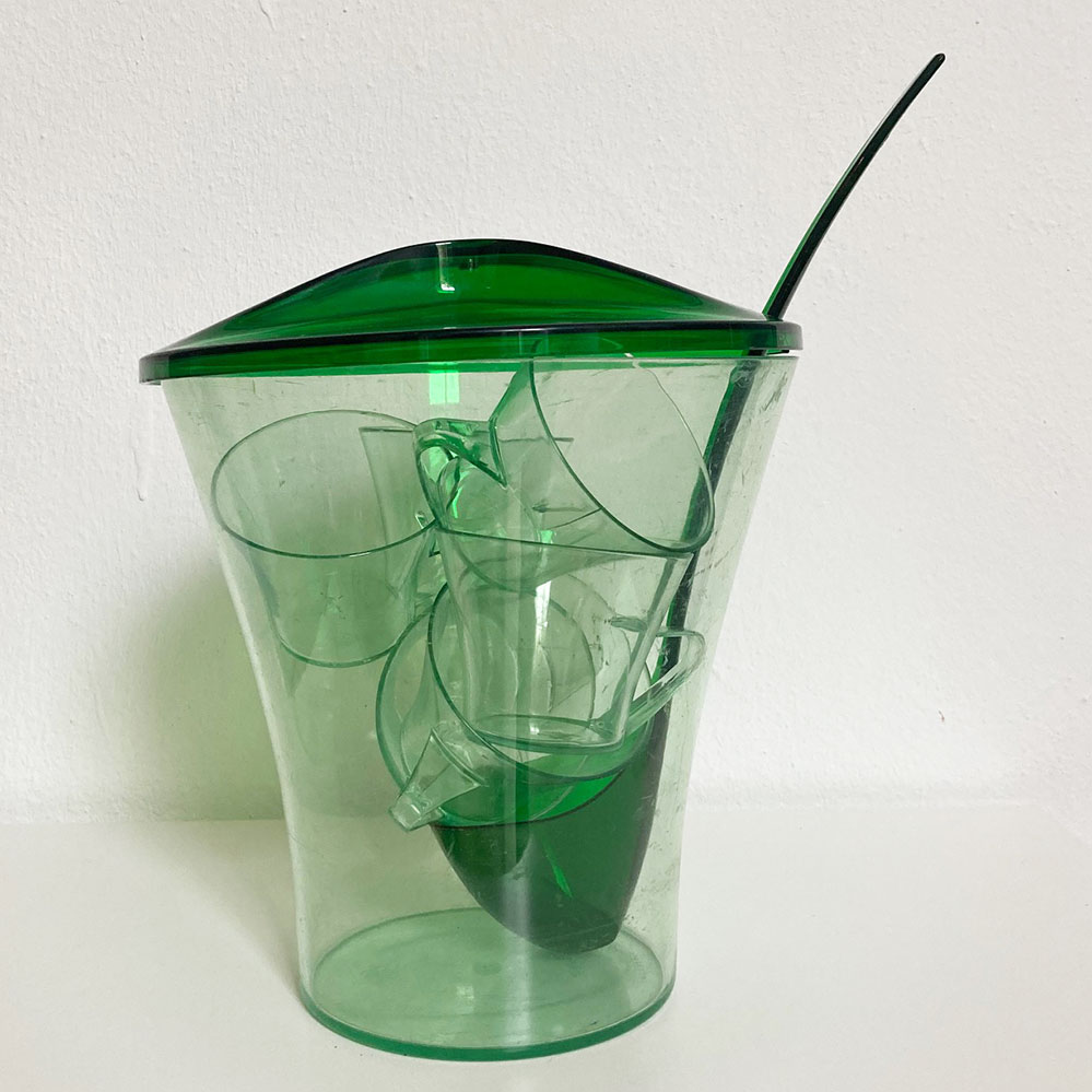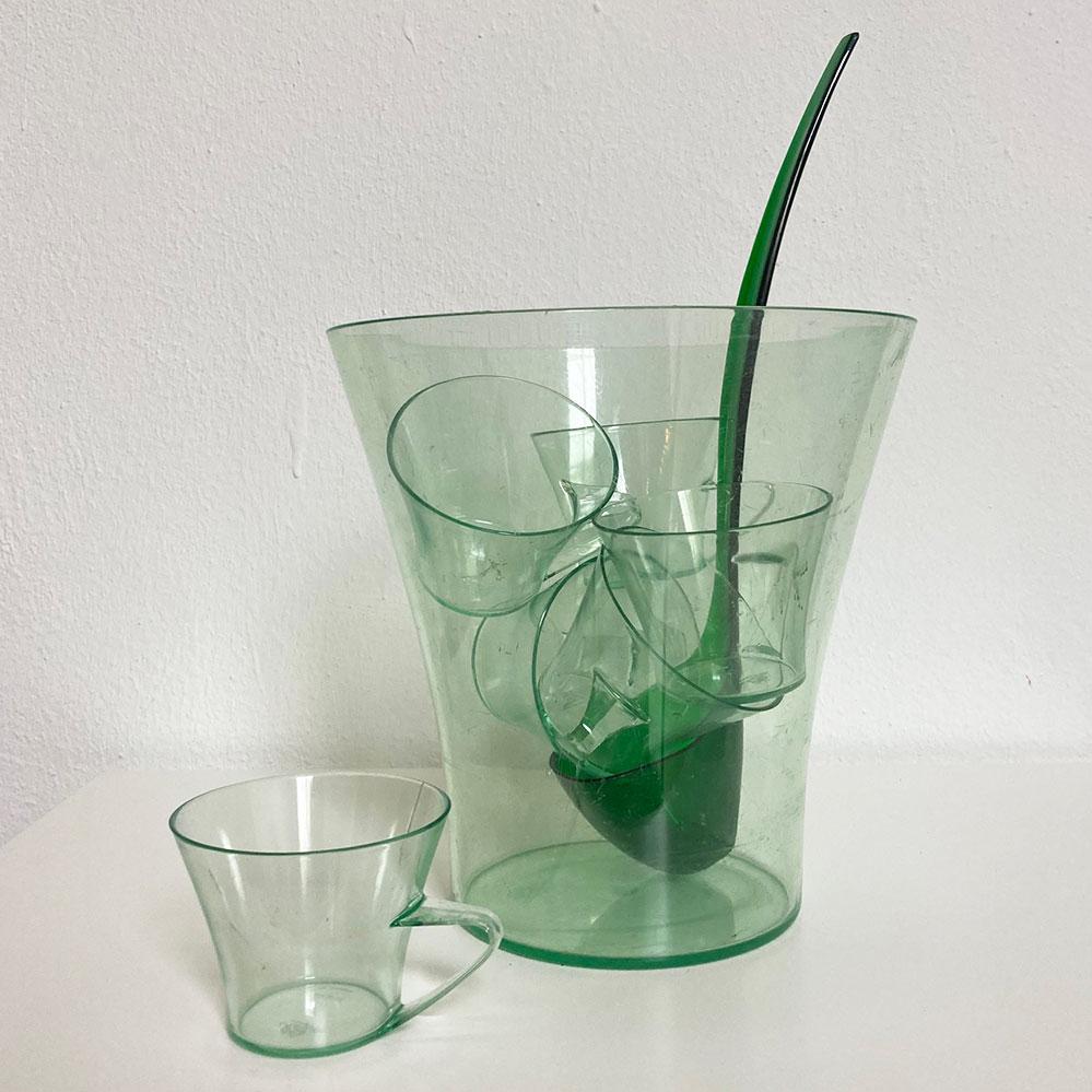 Das Bowleservice aus transparentem PMMA-Kunststoff gilt als eine Ikone des deutschen Produktdesigns der 1950er Jahre. Häufig Wilhelm Wagenfeld zugeschrieben, stammt wohl nur der Entwurf des Bowlelöffels von ihm selbst.