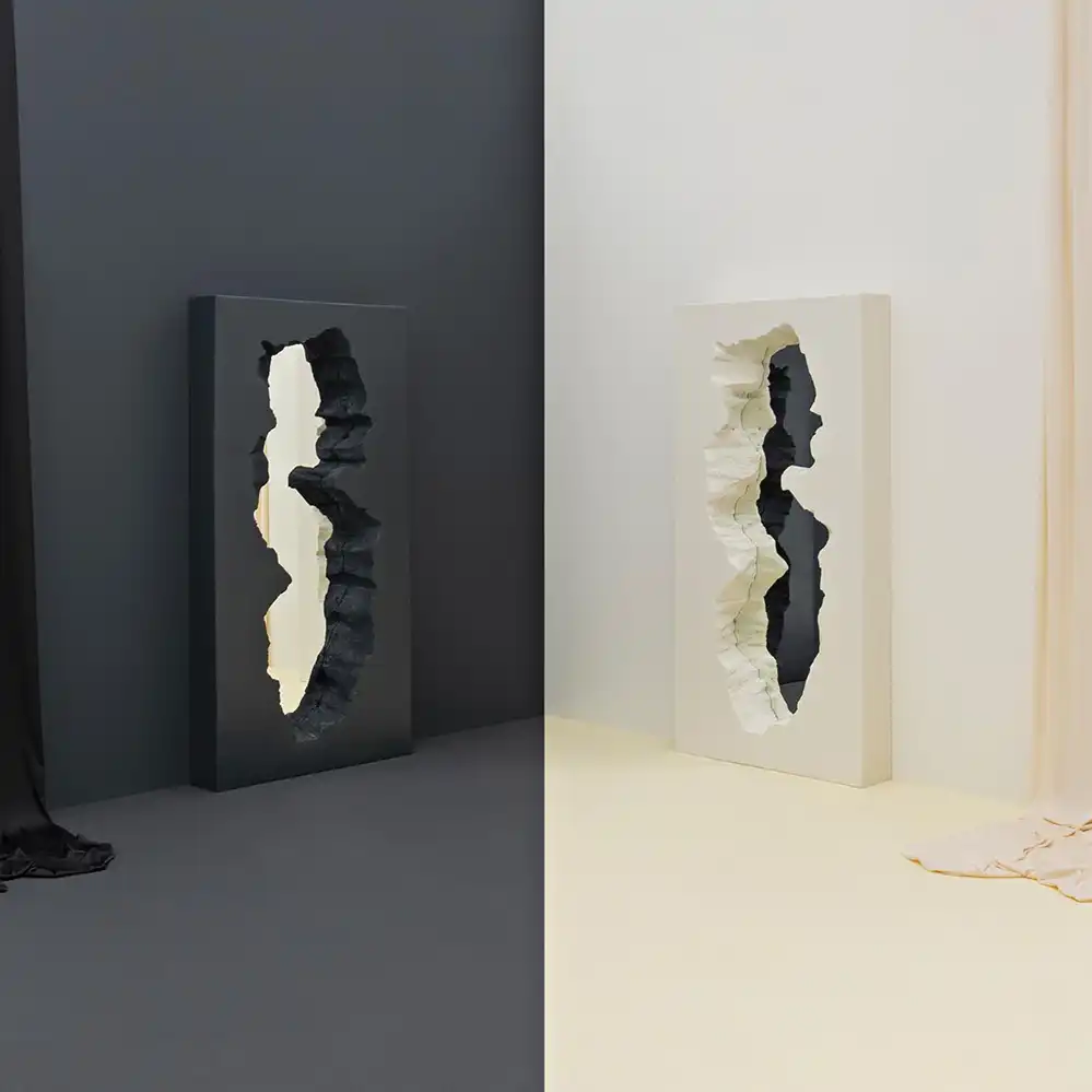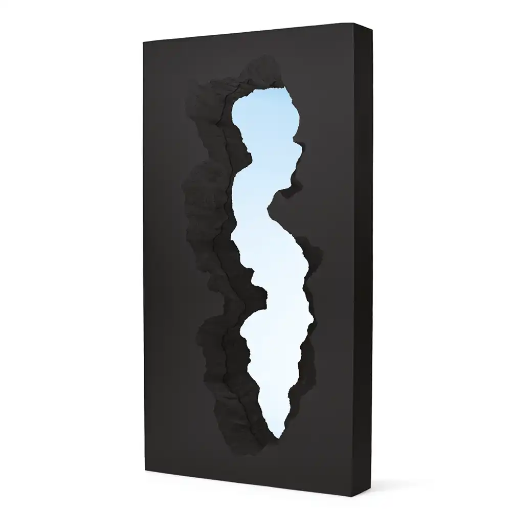 Die Almost Black Edition des Broken Mirror ist eine exklusive Sonderausführung des ikonischen Designs von Snarkitecture und Gufram. Auf nur 77 Exemplare weltweit limitiert, kombiniert diese Edition die charakteristische „gebrochene“ Polyurethan-Form mit einem tiefen, fast schwarzen Farbton, der dem Objekt eine noch stärkere skulpturale Präsenz verleiht. Wie das Original wird auch diese Version von Hand mit der patentierten Guflac®-Oberfläche veredelt, die dem Rahmen eine einzigartige, wandähnliche Textur verleiht. Der Spiegel erzeugt eine illusionistische Öffnung im Raum und verbindet Funktion mit künstlerischem Ausdruck – in einer besonders edlen, limitierten Ausführung.