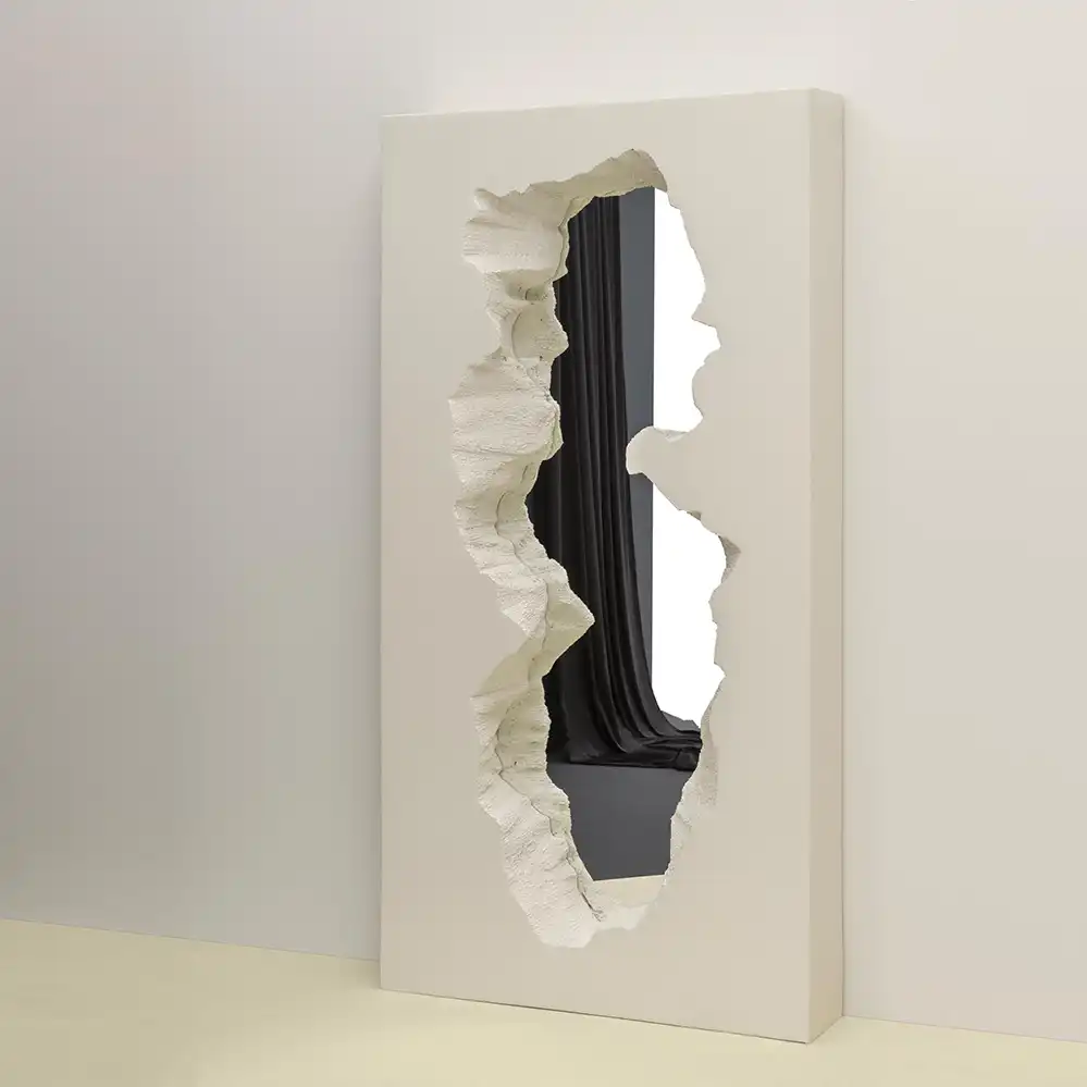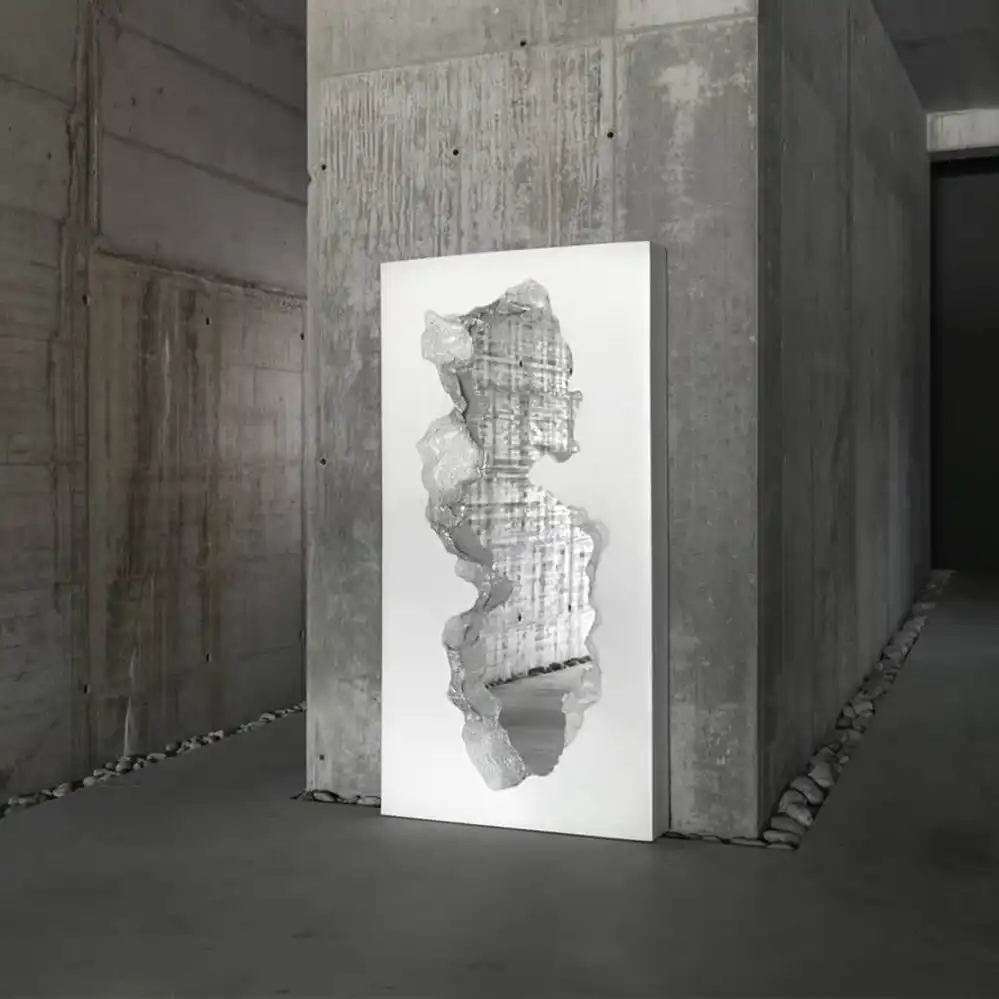Die Almost White Edition des Broken Mirror präsentiert das ikonische Design von Snarkitecture und Gufram in einer besonders hellen, fast weißen Farbgebung. Auf nur 77 Exemplare weltweit limitiert, verstärkt diese Edition die illusionistische Wirkung des Spiegels und verleiht ihm eine nahezu architektonische Klarheit. Der handgefertigte Polyurethan-Rahmen mit seiner „gebrochenen“ Struktur wird mit der patentierten Guflac®-Oberfläche versehen, die eine einzigartige, wandähnliche Textur erzeugt und gleichzeitig elastisch bleibt. Der Spiegel öffnet den Raum visuell und verbindet Funktion mit künstlerischem Ausdruck – in einer exklusiven, minimalistischen Variante.