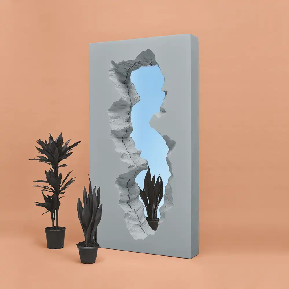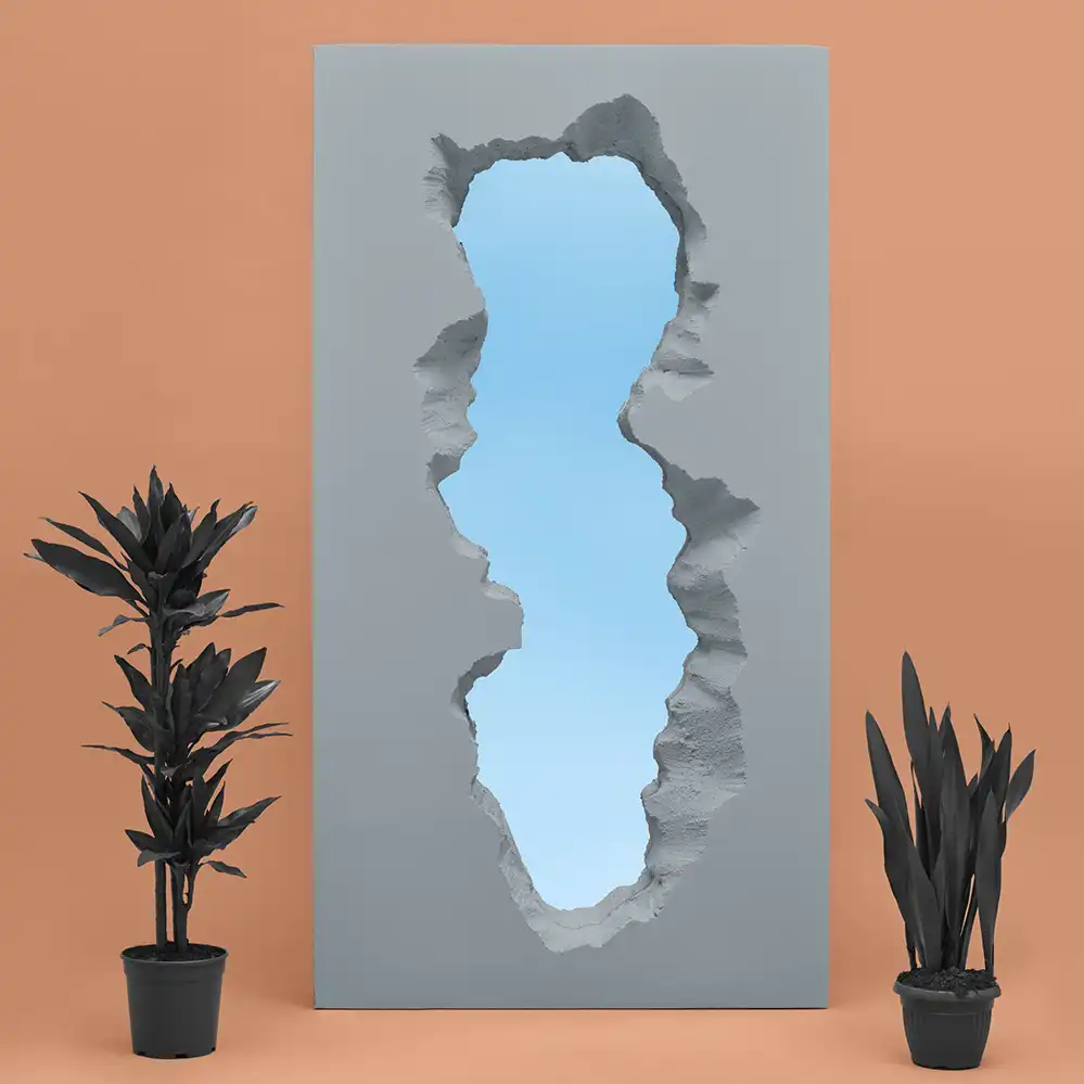 Der Broken Mirror ist ein außergewöhnliches Designobjekt, das die klassische Funktion eines Wandspiegels hinterfragt und neu interpretiert. Entstanden aus der ersten Zusammenarbeit zwischen dem italienischen Hersteller Gufram und dem New Yorker Designstudio Snarkitecture verbindet dieses Produkt Kunst, Architektur und Design auf innovative Weise. Der Spiegel wird von einem Rahmen aus weichem Polyurethan umgeben, wöhrend ie Oberfläche mit der patentierten Guflac®-Technologie von Hand bearbeitet wird. Dadurch erhält das Material eine einzigartige, betonähnliche Textur, bleibt aber flexibel und elastisch. Inspiriert vom experimentellen Geist der italienischen Radikaldesigner der 1970er Jahre, steht dieses Objekt für eine neue Form der gestalterischen Zusammenarbeit und für die kreative Erforschung von Raum und Material.