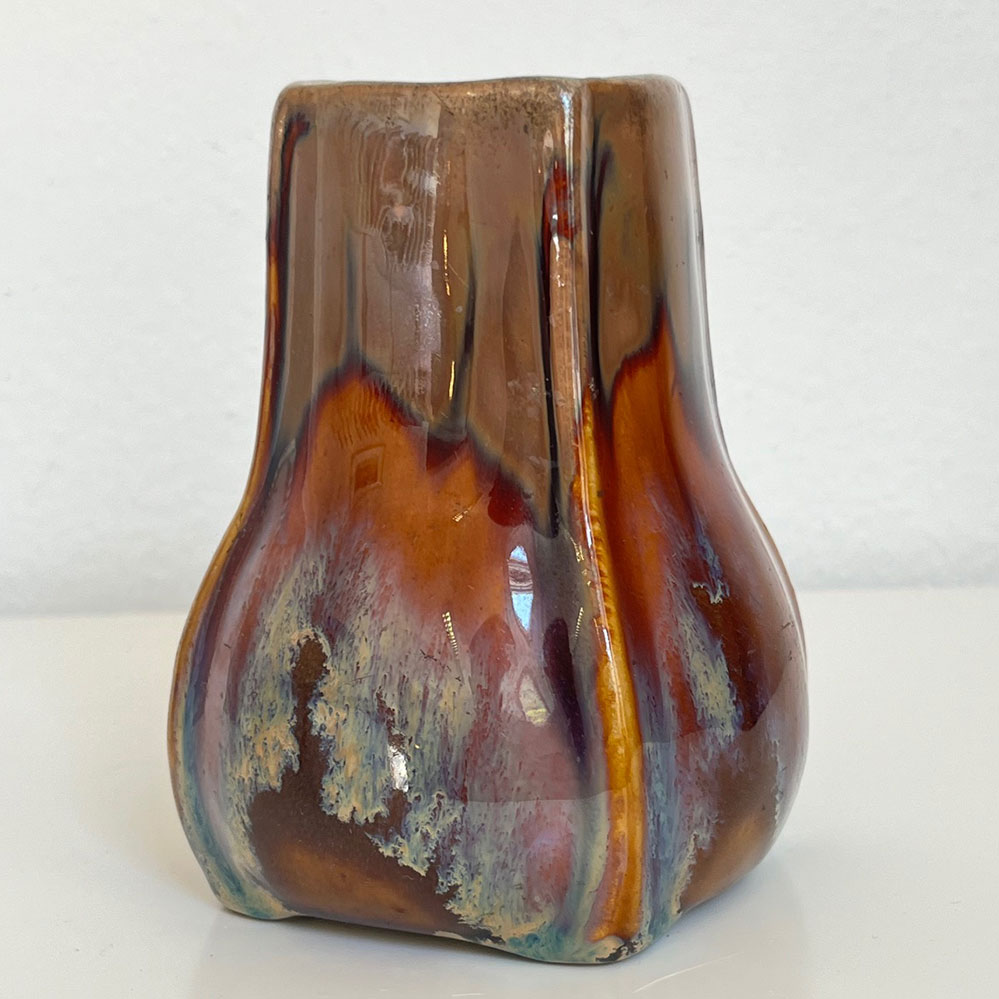 Diese 12 cm hohe Vase ist ein Entwurf aus der Keramik- und Modellierklasse der Großherzoglich-Sächsische Kunstgewerbeschule Weimar um 1907. Es ist dabei unklar, ob die Formgebung von dem Leiter der Klasse Henry van de Velde selbst stammt oder eine Schülerarbeit ist (allerdings hatte die Klasse wohl nur ca. 15 Schüler, unter anderem Otto Lindig oder Erica von Scheel). Ausgeführt wurde die Vase mit der Überfangglasur von der Hofkunsttöpferei Franz Eberstein oder den Bürgeler Kunstkeramische Werkstätten Carl Fischer in Bürgel.