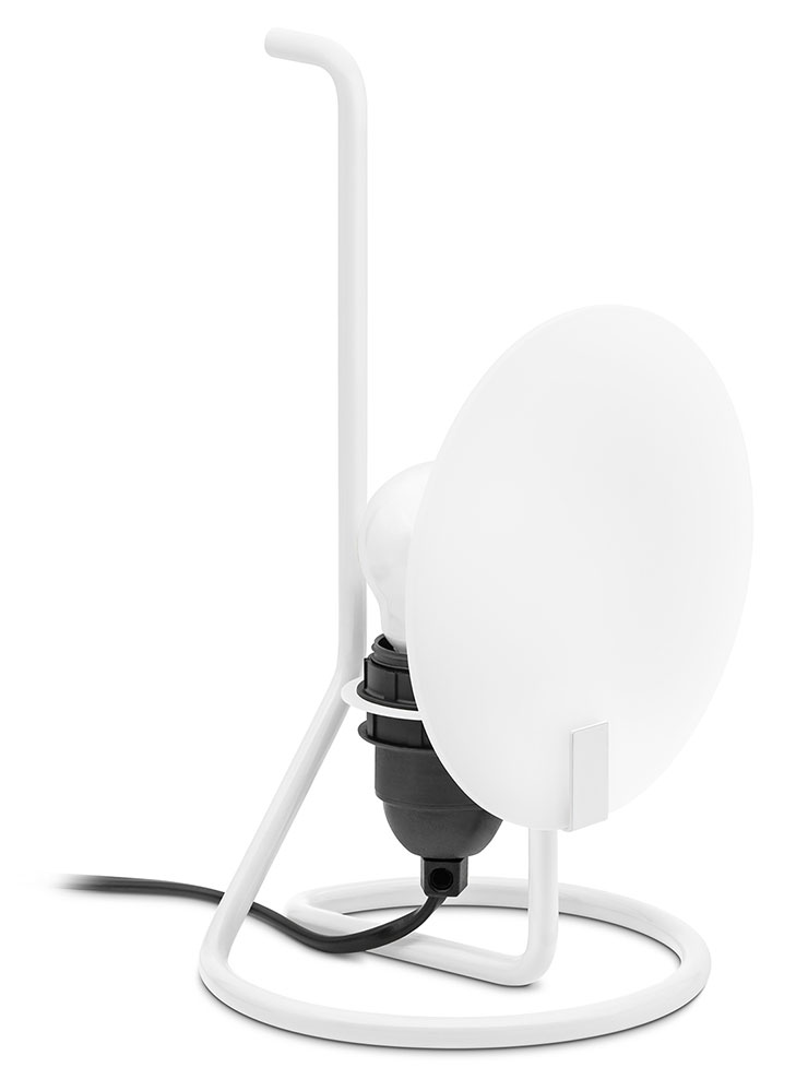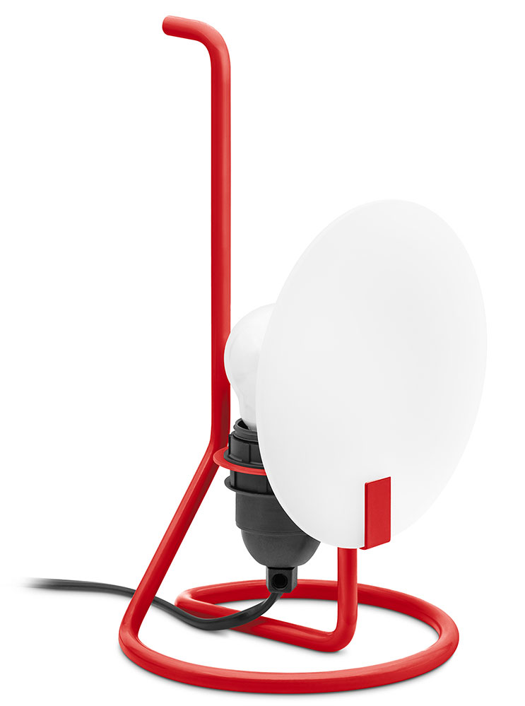 Die Bugia Tischleuchte ist ein typisches Kind der 1970er Jahre. Die Formgebung von Antonio Macchi Cassia aus dem Jahr 1977 ist eine Hommage an alte Kerzenständer mit Henkel, die im Italienischen "bugia" genannt werden, dem vereinfachten Namen der algerischen Stadt Bidgiaya, die damals den größten Teil des Wachs für die Kerzenherstellung in Italien lieferte. Diese kuriose Anekdote begleitet heute auch die moderne Bugia: eine ebenso einfache wie geniale Tischleuchte.