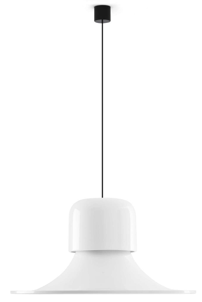 Ein typische Kind der 1960er Jahre und der Popkultur ist die Pendelleuchte Campana von Stilnovo mit ihrem 64 cm großen Reflektor. Erhältlich ist der Werksentwurf aus dem Jahr 1969 in drei Farben: Weiß, Rot und Grau/Aluminium.
