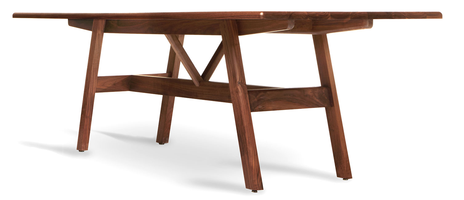 Der rechteckige Kant Dining Table entstand im Jahr 2014 als Einrichtungsobjekt für ein Haus im amerikanischen New Canaan, wo sich auch der Unternehmenssitz von BassamFellows befindet. Der Tisch wird aus Massivholz gefertigt und zeichnet sich durch ein elegantes, statisch ausgeklügeltes Gestell aus, das auch schwere Tischplatten tragen kann, ohne optisch zu sehr in den Vordergrund zu treten. Erhältlich ist der Tisch bei Markanto als Standard in drei verschiedenen Maßen (weitere Größen bis zu 365 cm Länge gerne auf Anfrage).