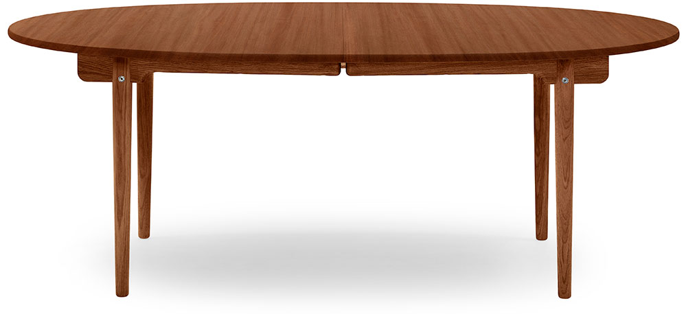 Der optional verlängerbare Massivholztisch CH338 von Carl Hansen ist wahlweise in Eichem Nussbaum oder Mahagoni (gerne auf Anfrage) erhältlich, zusammen mit dem passenden Wishbone Chair entsteht so ein traumhaftes Ensemble. Zusätzlich verfügt der Tisch über einen mittigen Auszug und kann mittels einer zusätzlichen Platte um 60 cm verlängert werden.