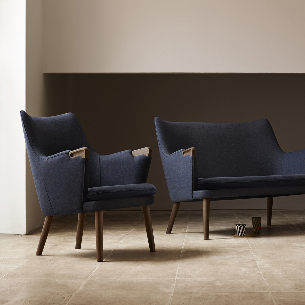 Den Armlehnsessel CH71 entwarf Hans Wegner im Jahr 1954. Ein interessantes Detail sind dabei die kleinen Armlehnen, die sich auch bei seinem ikonischen Teddy Bear Chair wiederfinden. 2018 wurde der Klassiker von Carl Hansen neu aufgelegt. Erhältlich ist der CH71 bei Markanto in Eiche und Nussbaum, der Sitzbezug ist aus Stoff oder Leder (andere Stoffe oder Leder gerne auf Anfrage). Passend zu dem Sessel ist das Sofa CH72 von Carl Hansen.
