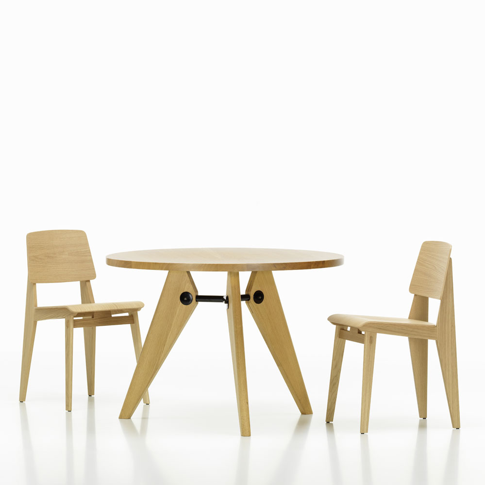 Der 2020 von Vitra aufgelegte Prouvé Stuhl Chaise Tout Bois basiert auf dem bekannten Stuhl Standard Chair, den der französische Designer und Konstrukteur ab 1934 in verschiedenen Varianten entwarf. Typisches Merkmal der Stuhlserie sind die verstärkten, hinteren Beine, welche die Belastung an den Boden weitergeben sollen. Die Variante des Stuhls aus Holz entstand 1941 wegen der Materialknappheit von Metall während des Zweiten Weltkriegs. Dabei hat Jean Prouvé den Chaise Tout Bois so gestaltet, dass er komplett ohne Schrauben auskommt. Die Höhe und Sitzgeometrie sind identisch wie bei Standard Chair und entsprechen den heutigen Normen.