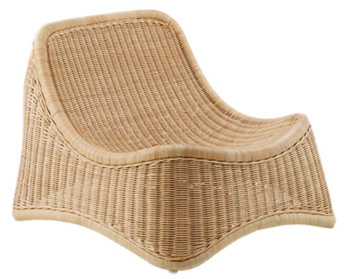 Den stapelbaren Rattansessel Chill entwarf Nanna Ditzel im Jahr 1961, er wurde damals zuerst von der dänischen Firma R. Wengler produziert. Der Preis ist inklusive des passenden Fußhockers (siehe zweite Abbildung).