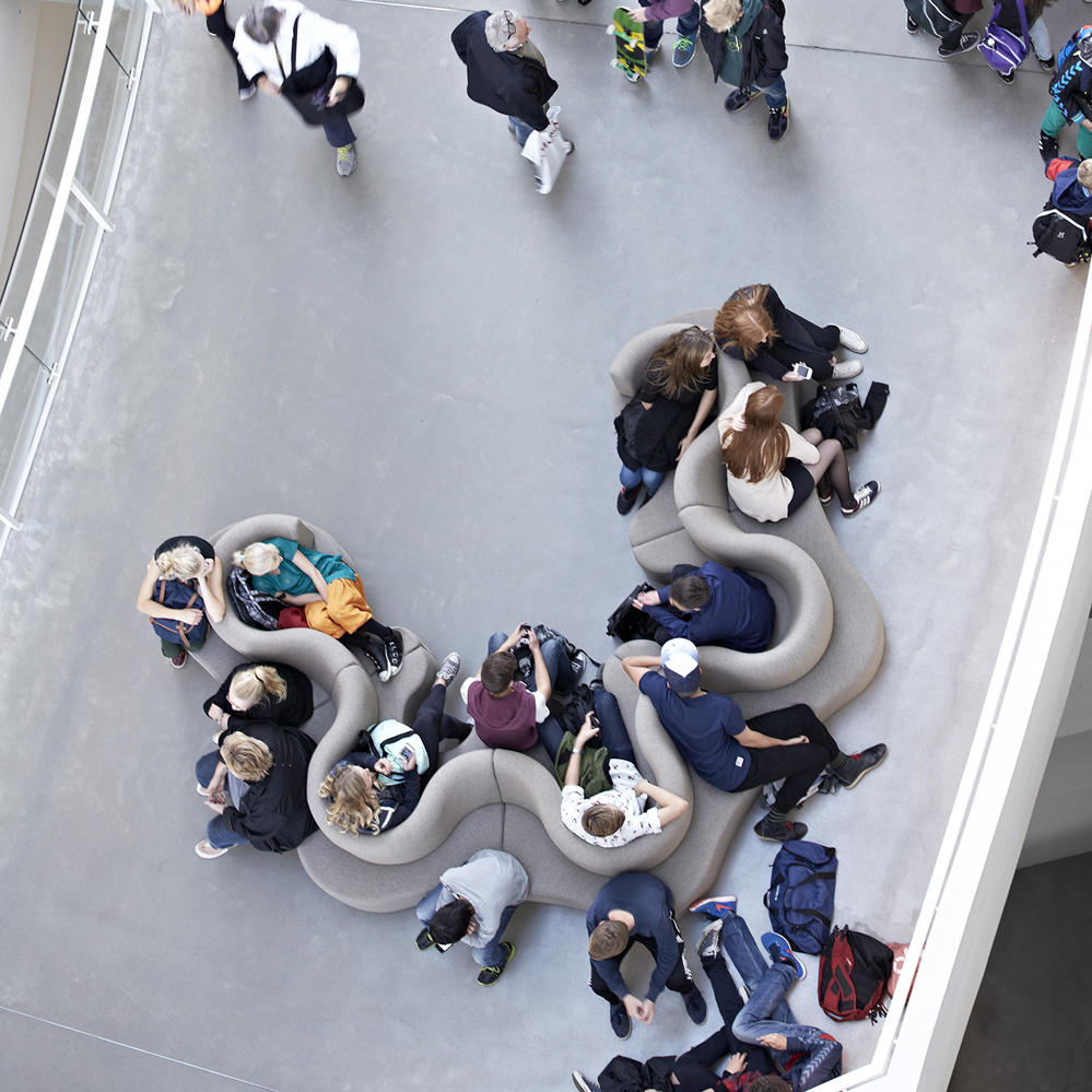 Die hier angebotene Variante des Cloverleaf Sofas besteht aus sechs Modulen (ein linkes Element, vier mittleren Elementen und rechtes Element) und ist eine der größeren Standard-Variante des Panton Sofas von Verpan. Weitere Varianten, Farben oder andere Stoffpolsterungen gerne auf Anfrage – bitte fragen Sie uns nach einem individuellen Angebot für Ihre Sofa-Konfiguration. Das Cloverleaf Sofa findet sich exemplarisch nicht nur in vielen Stores der Modemarke Prada, sondern auch im Loungebereich zahlreicher Hotels oder Büros.