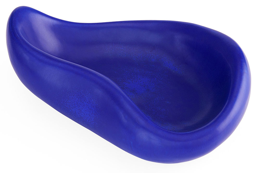 Die Cobalt Schale aus Steinzeug von Jonathan Adler ist in drei Größen erhältlich, wobei jede Form anders ausfällt. Die Formgebung erinnert uns an Keramiken des französischen Kunsttöpfers Georges Jouve, die seidenmatte Kobaltglasur hingegen an das berühmte Blau von Yves Klein.