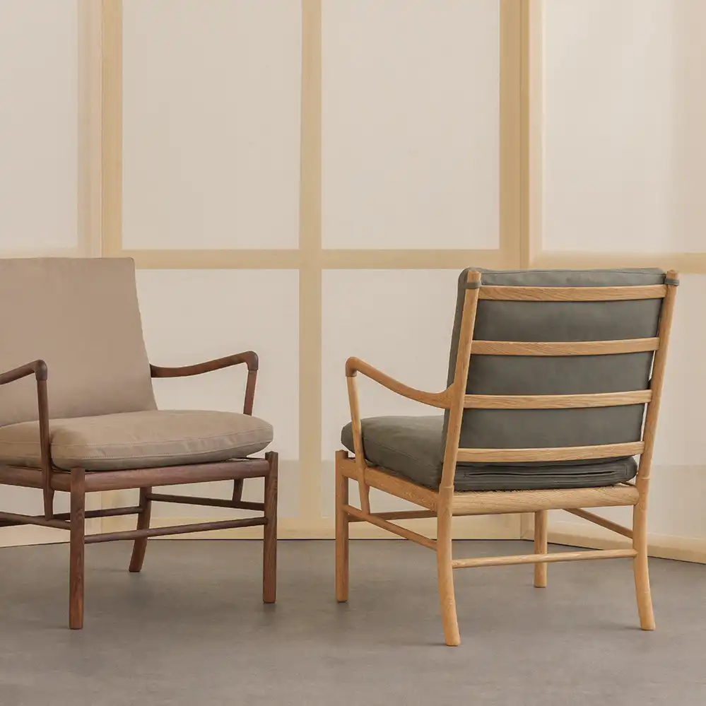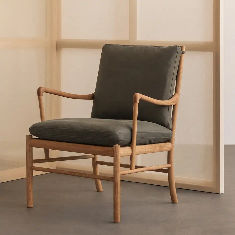 Bis zum 30. April 2026 ist der Colonial Chair bei Markanto in vier Lederfarben des neuen Anilinleders TERRA zum Aktionspreis mit rund 25% Rabatt erhältlich. Das Anilinleder von Sørensen besticht durch die weiche Haptik und zählt zu der teuersten Preiskategorie von Carl Hansen. Weitere Ole Wanscher Möbel in dem Terra Leder gerne auf Anfrage.