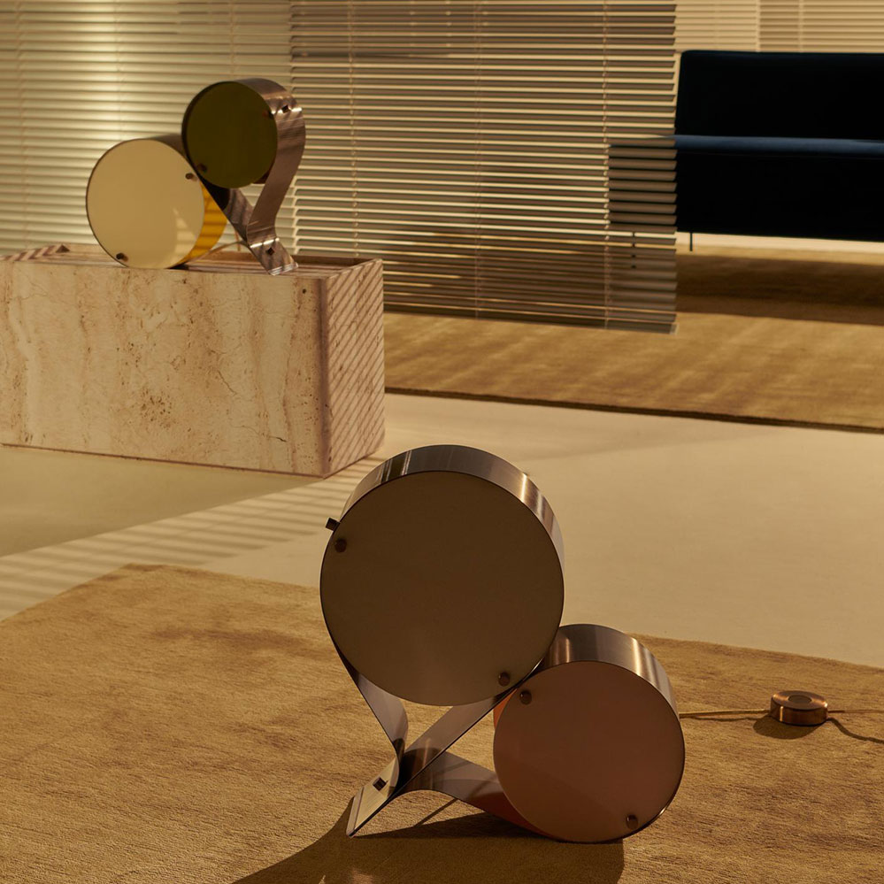 Zeitlos im Stil des brutalistischen Designs präsentiert sich die verstellbare Coppia der dänischen Entwerferin Vibeke Fonnesberg Schmidt. Erstmals von Gubi während der 3 Days of Design in Kopenhagen 2024 vorgestellt, faszinierte uns die Leuchte auf Anhieb. Gefertigt aus Edelstahl, wirken die Stahlbändern wie eine Schlaufe, in der sich die Reflektoren aus Acrylglas befinden.