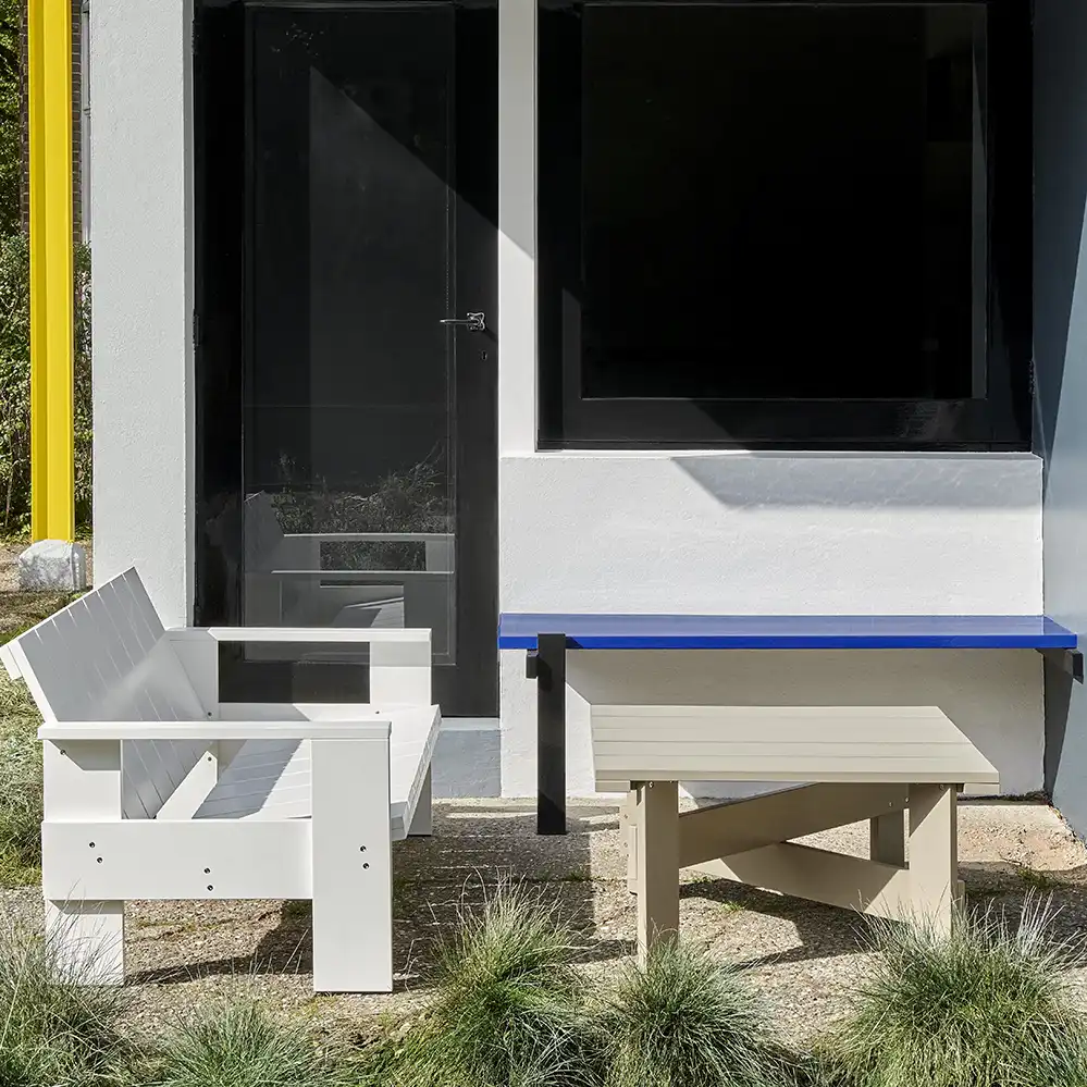 Gerrit Rietveld wurde 1888 in den Niederlanden geboren. Zunächst erlernte er den Beruf des Möbeltischlers in der Werkstatt seines Vaters, anschließend belegte er Kurse im Architekturzeichnen und eröffnete 1911 seine eigene Möbeltischlerei. Im Jahr 1919 ließ er sich als selbstständiger Architekt in Utrecht nieder. In dieser Zeit machte er die Bekanntschaft mit der Künstlergruppe De Stijl, der er sich im Jahr 1919 anschloss. Bekannt wurde Gerrit Rietveld vor allem durch seinen rot-blauen Stuhl (Red and Blue Chair), der das De Stijl Prinzip als dreidimensionales Möbel umsetzte. Mit dem sogenannten Rietveld-Schröder-Haus in Utrecht schrieb er dann Architekturgeschichte, heute zählt das um 1924 entworfene Haus zum UNESCO-Weltkulturerbe. Rietveld hat jedoch ein viel umfangreicheres Werk hinterlassen, über 1.000 Entwürfe für Häuser oder Möbel sind heute bekannt.