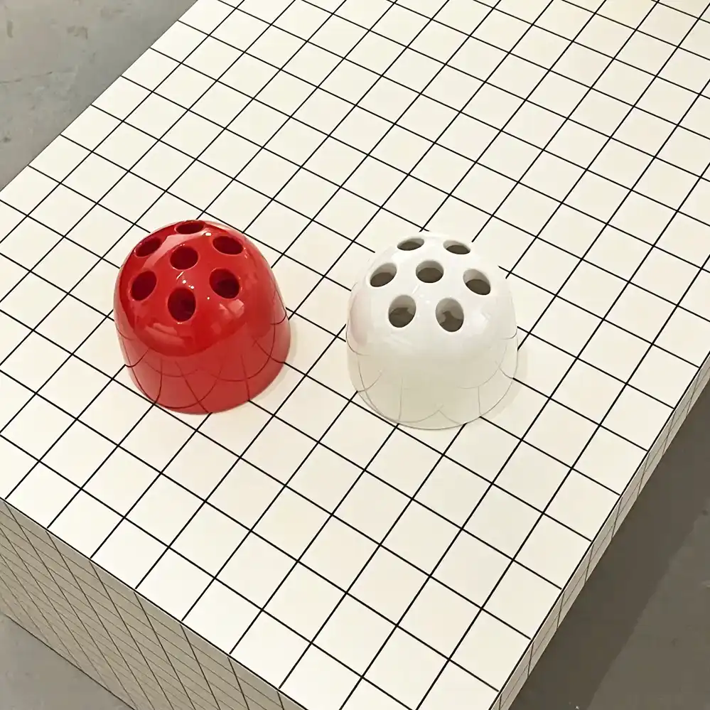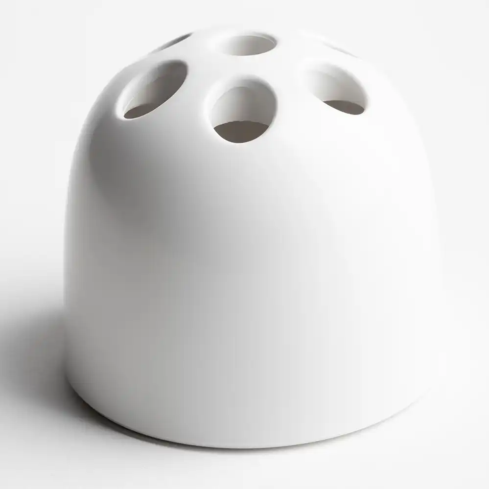 Der Dedalino Stiftehalter wurde von Emma Gismondi Schweinberger für Artemide entworfen als Miniatur des Dedalo Schirmständer entworfen, einer IkoneIkone des Space-Age-Designs. Die Reedition von Danese Milano. einer Tochterfirma von Artemide, bleibt dem Original treu: Mit seiner organisch-futuristischen Form und den perforierten Öffnungen bietet der Stiftehalter eine stilvolle Möglichkeit zur Organisation von Stiften, Pinseln oder anderen Schreibutensilien. Gefertigt aus hochwertigem, wahlweise weiß, rot oder schwarzem Kunststoff mit glänzender Oberfläche, passt Dedalino perfekt auf Schreibtische im Pop-Art- oder Space-Age-Design.