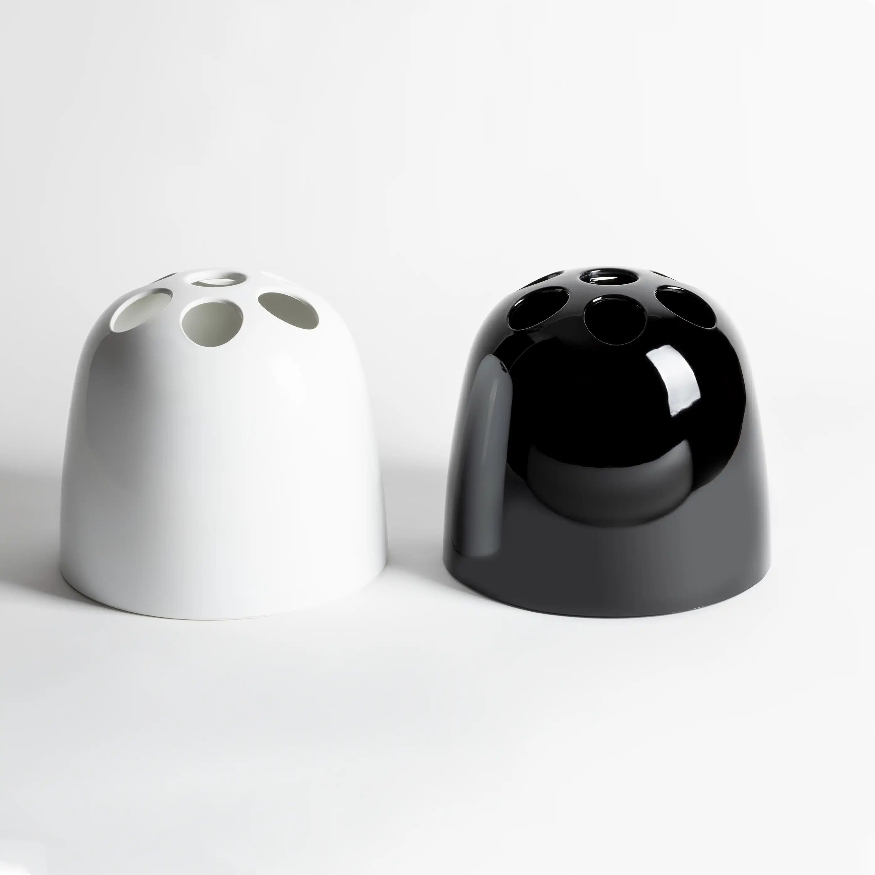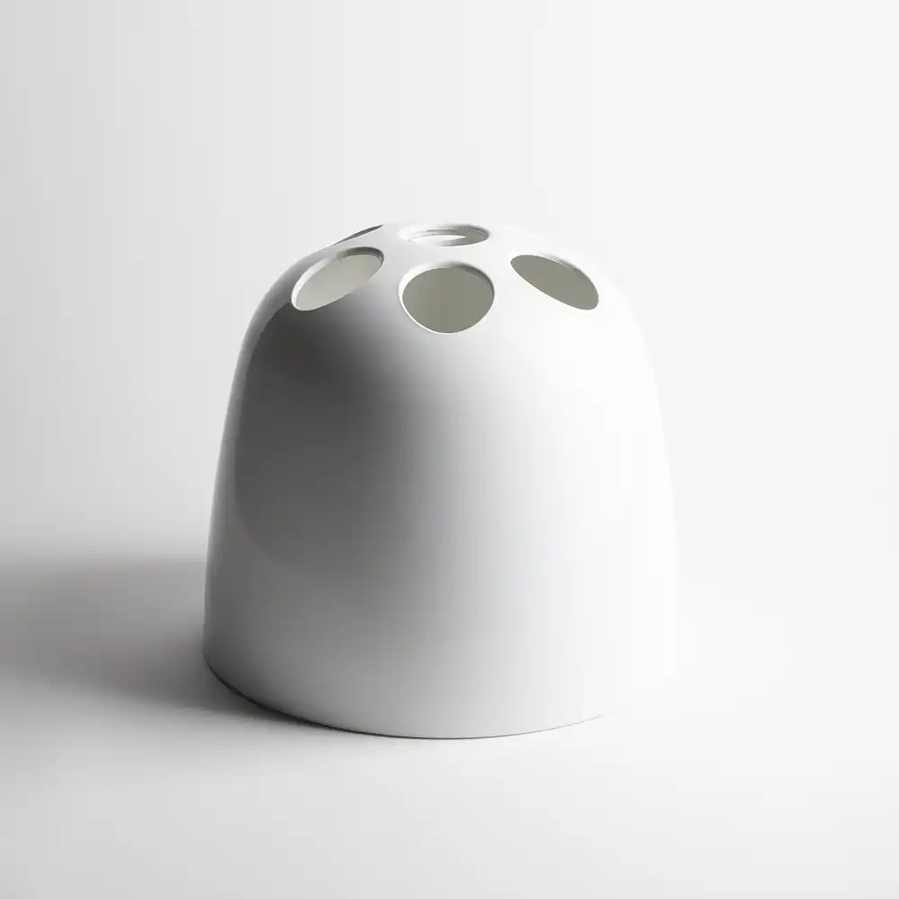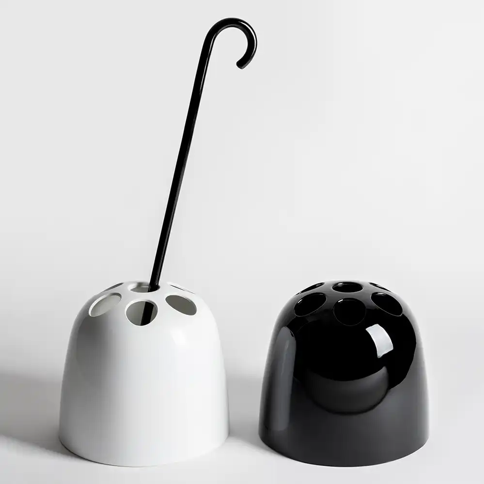 Der Dedalo Schirmständer, ursprünglich 1966 von Emma Gismondi Schweinberger für Artemide entworfen, ist eine Ikone des Space-Age-Designs. Die aktuelle Reedition der Artemide-Tochter Danese Milano bewahrt die charakteristische organische Form und kombiniert sie mit hochwertigem, glänzendem Kunststoff. Mit seinen großzügigen Öffnungen bietet Dedalo eine stilvolle und funktionale Lösung zur Aufbewahrung von Regenschirmen.