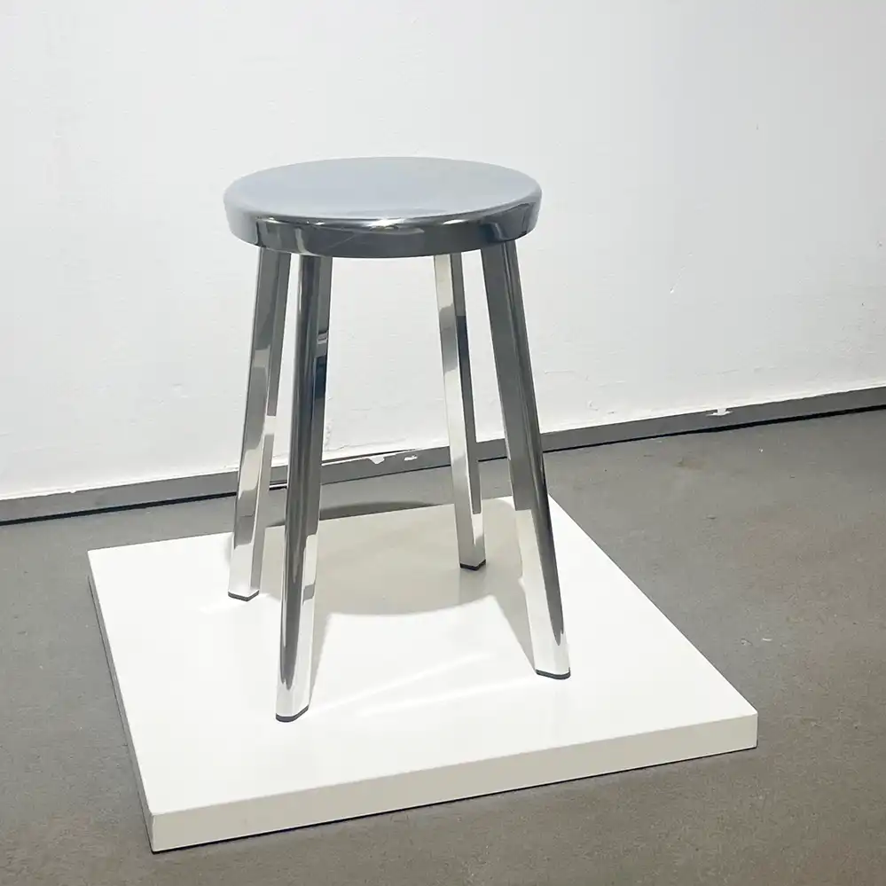 Der 50 cm hohe Aluminium-Hocker von Naoto Fukasawa zählt zu seiner Déjà-vu Serie für Magis.