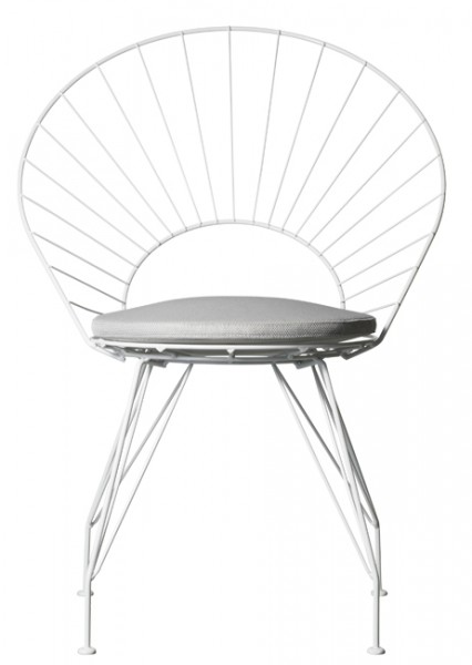 Der filigrane Gartenstuhl Desirée von Yngve Ekström ist ein recht untypischer Entwurf für den schwedischen Designer. Der Entwurf entstand im Jahr 1954 und wird seitdem von Swedese in Schweden produziert. Der weiß lackierte Metalldraht symbolisiert eine Leichtigkeit, das Sitzkissen aus Baumwolle ist wahlweise hell oder dunkel. Optional sind für den Gartenstuhl bei Swedese auch passende Gartentische verfügbar.