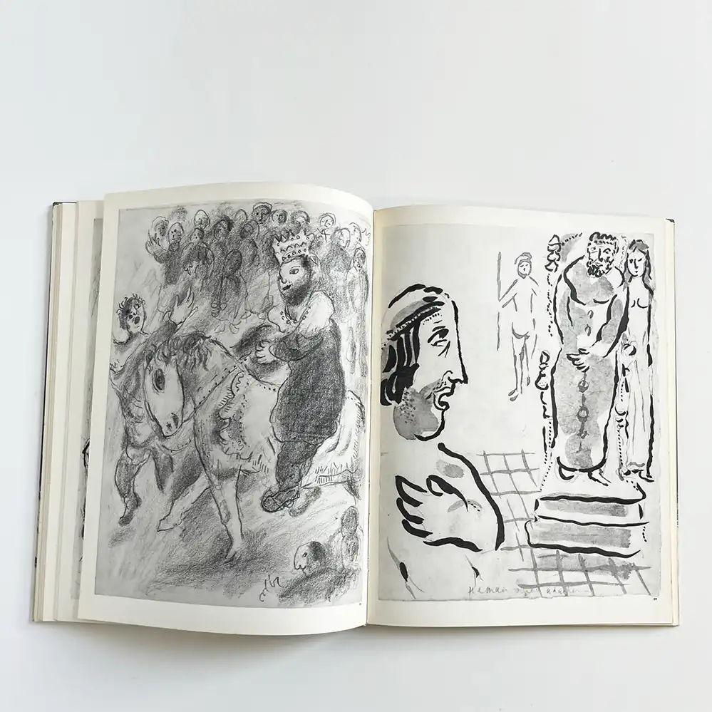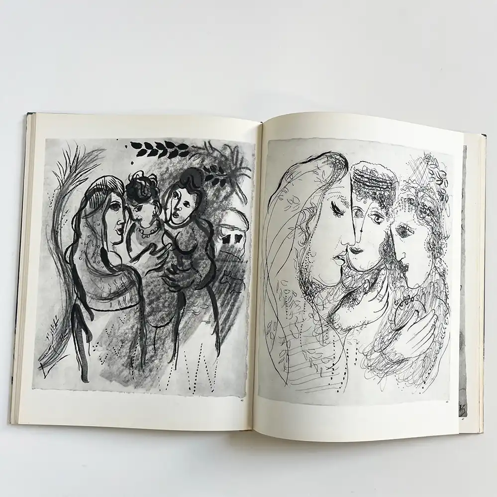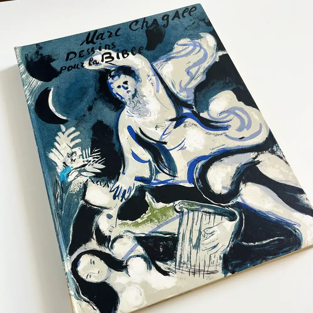 Das großformatige Buch „Dessins pour la Bible” erschien 1960 im Verve Verlag in Paris und enthält 96 Reproduktionen sowie eine Illustration von Chagall auf dem Einband. Fehlend sind leider die 24 Farblithografien.