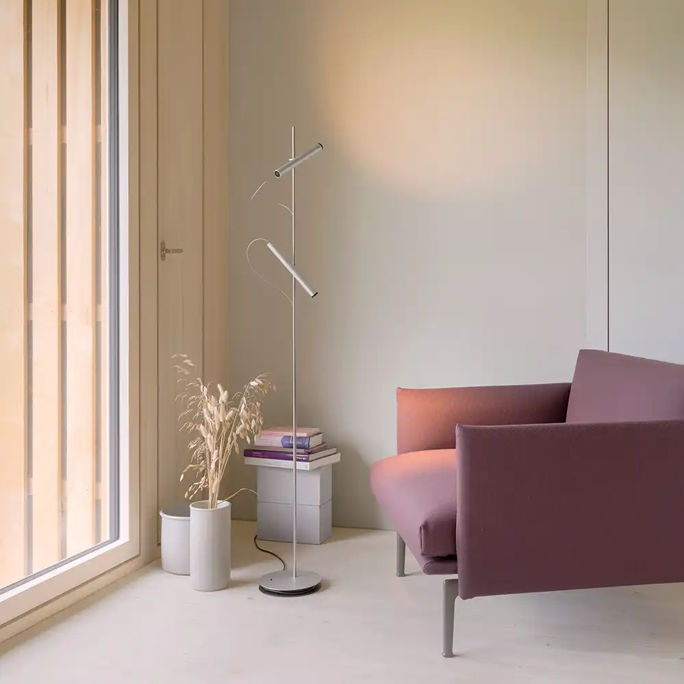 Die LINIjA S Stehleuchte von Baltensweiler vereint filigranes Edelstahlgestänge mit formschlichten Leuchtenköpfen aus Aluminium. Ihr geradliniges, puristisches Design setzt den Fokus auf das Wesentliche und überzeugt mit durchdachten Details. Die verschiebbaren und richtbaren Leuchtenköpfe ermöglichen eine gezielte Ausleuchtung – ideal zur Inszenierung von Kunstwerken, Bücherwänden oder Raumbereichen. Dank stufenlos einstellbarem Ausstrahlwinkel am Fokussierstift lässt sich das Licht individuell anpassen und schafft immer neue Lichtstimmungen.