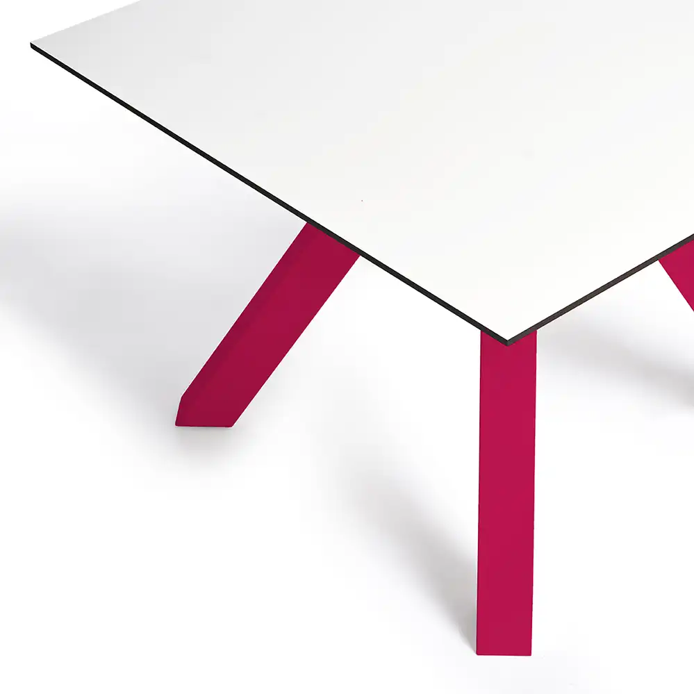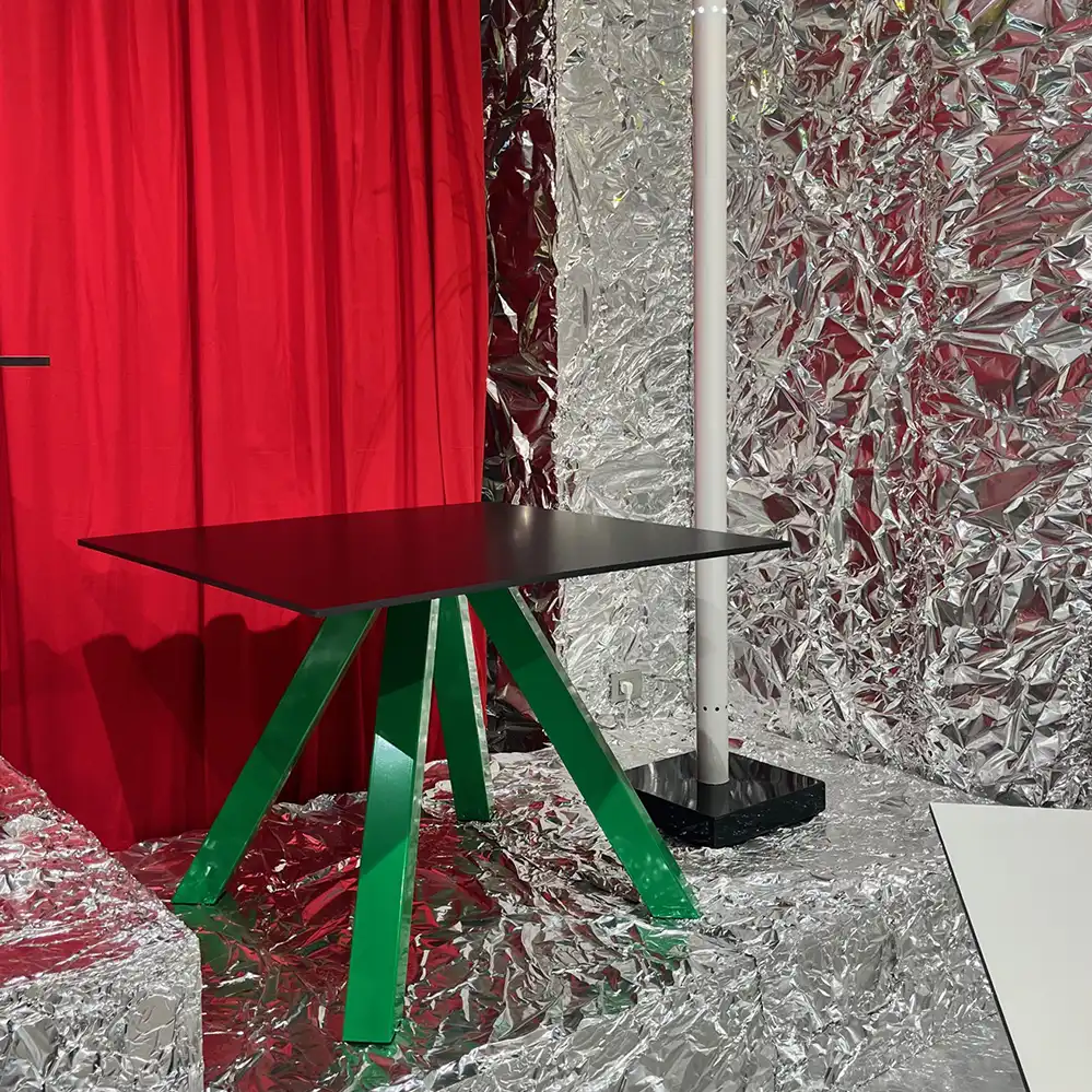 Der Crazy Horse Table wurde 1968 von Ettore Sottsass für Poltronova entworfen und 2025 erneut in Produktion genommen. Der quadratische Tisch zeichnet sich durch das pyramidenförmige Gestell aus. Der Produktname bezieht sich auf das Pariser Kabarett "Crazy Horse", das für seine innovative Choreografie und sein lebhaftes Lichtspiel bekannt ist. Die Tischplatte aus HPL-Kunststoff wird von vier lackierten Metallbeinen getragen.