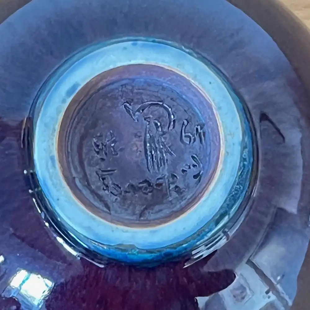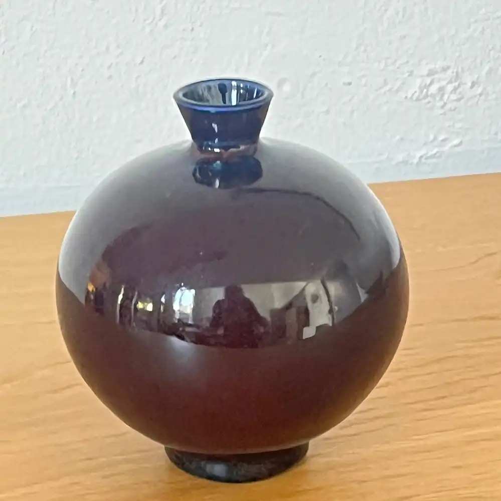 Die kleine bauchige Vase stammt von Schwedens wichtigstem Keramiker Berndt Friberg und zeichnet sich besonders durch die glänzende Glasur aus, mit einem Verlauf von Dunkelblau bis Aubergine.