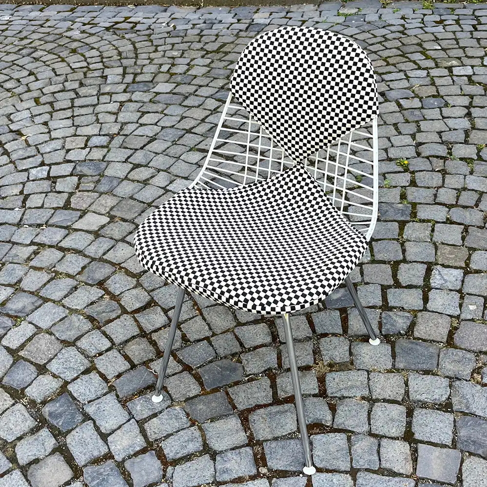 von Charles & Ray EamesHermanMiller Wire Chair DKX von Charles & Ray Eames: Mit Checker Bikini-Bezug