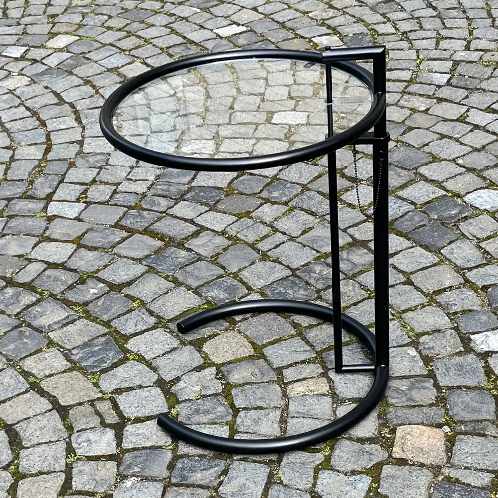 Entworfen hat Eileen Gray den höhenverstellbaren Beistelltisch ursprünglich für das von ihr entworfene Haus E.1027 an der Côte d'Azur, welches als Gesamtkunstwerk viele ihrer wichtigsten Möbelentwürfe enthielt und später von Le Corbusier malerisch verunstaltet wurde. Der Produktname des Tisches stammt übrigens auch von Eileen Gray und ist von der nummerischen Reihenfolges des Alphabetsabgeleitet: E steht dabei für Eileen, 10 für J, 2 für B und 7 für G (wie Gray). Das J und das B sind die Initialen von Eileen Grays langjährigen Lebenspartner, dem Architekten und Autor Jean Badovici.