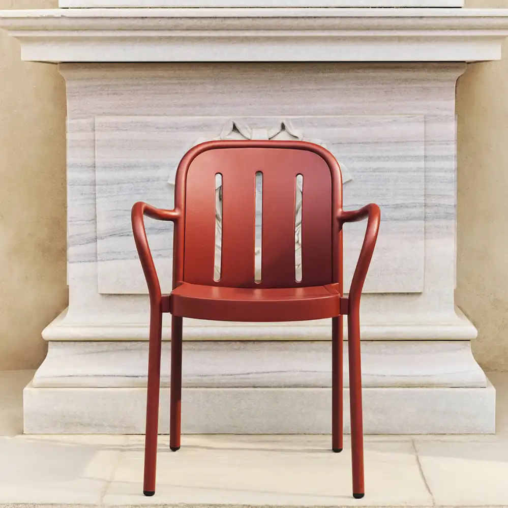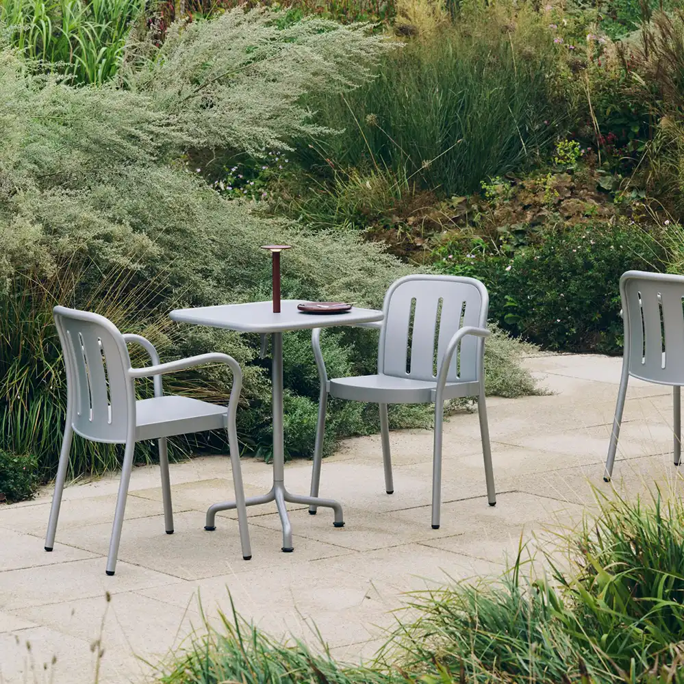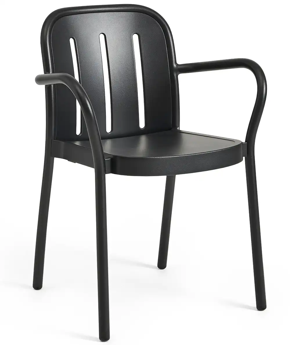 Der Deville Arm Chair ist eine zeitgemäße Interpretation des klassischen Bistrostuhls – erweitert um komfortable Armlehnen. Mit seiner sanft geschwungenen Form und großzügigen Proportionen verbindet er Funktionalität und Design für den Außenbereich. Gefertigt aus mindestens 60 % recyceltem Aluminium, ist der Stuhl rostbeständig, langlebig und leicht zu bewegen. Stapelbar und in verschiedenen Farben erhältlich, eignet er sich ideal für Balkon, Terrasse, Garten oder Café.