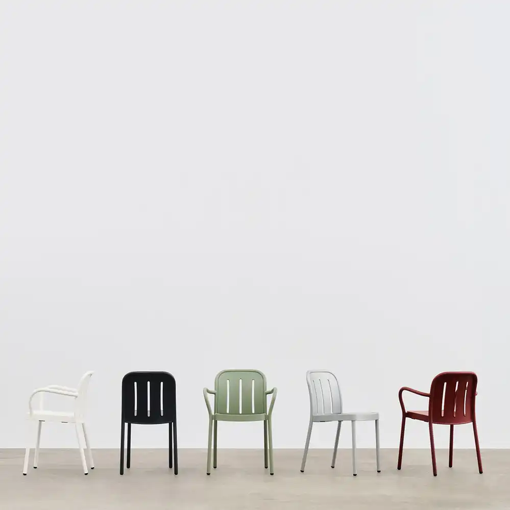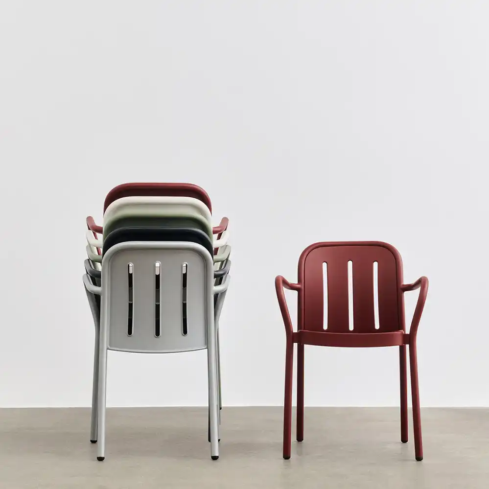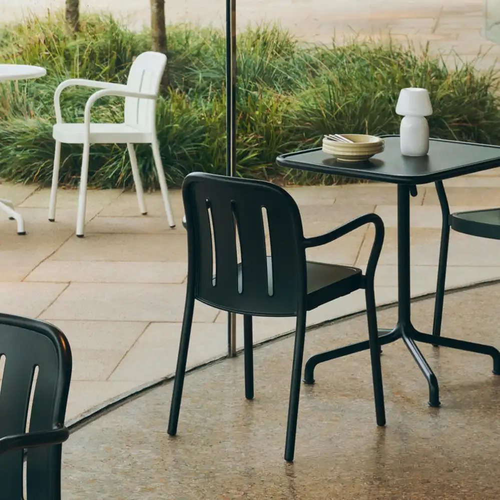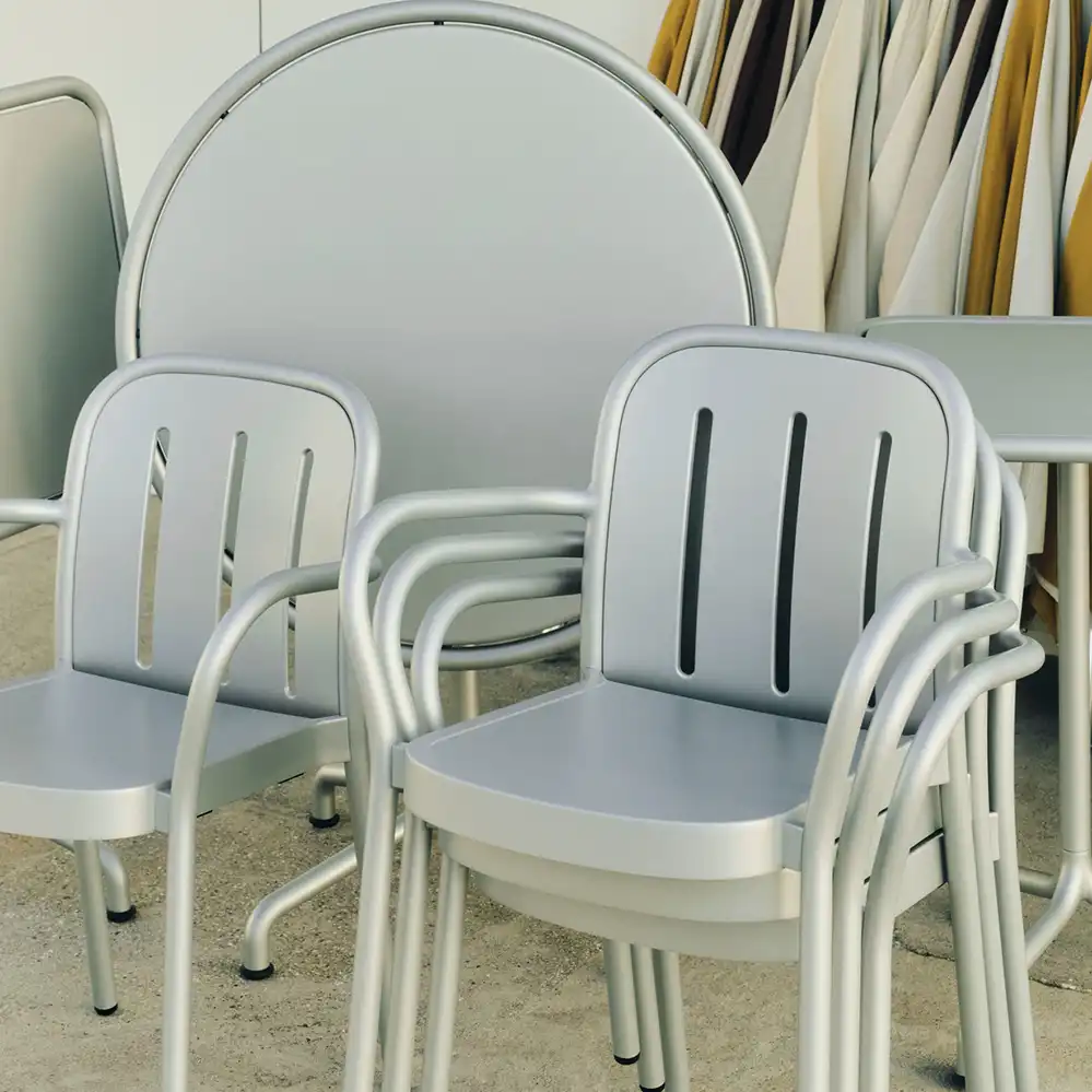 Der Deville Arm Chair ist eine zeitgemäße Interpretation des klassischen Bistrostuhls – erweitert um komfortable Armlehnen. Mit seiner sanft geschwungenen Form und großzügigen Proportionen verbindet er Funktionalität und Design für den Außenbereich. Gefertigt aus mindestens 60 % recyceltem Aluminium, ist der Stuhl rostbeständig, langlebig und leicht zu bewegen. Stapelbar und in verschiedenen Farben erhältlich, eignet er sich ideal für Balkon, Terrasse, Garten oder Café.