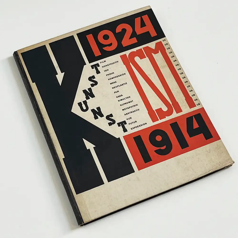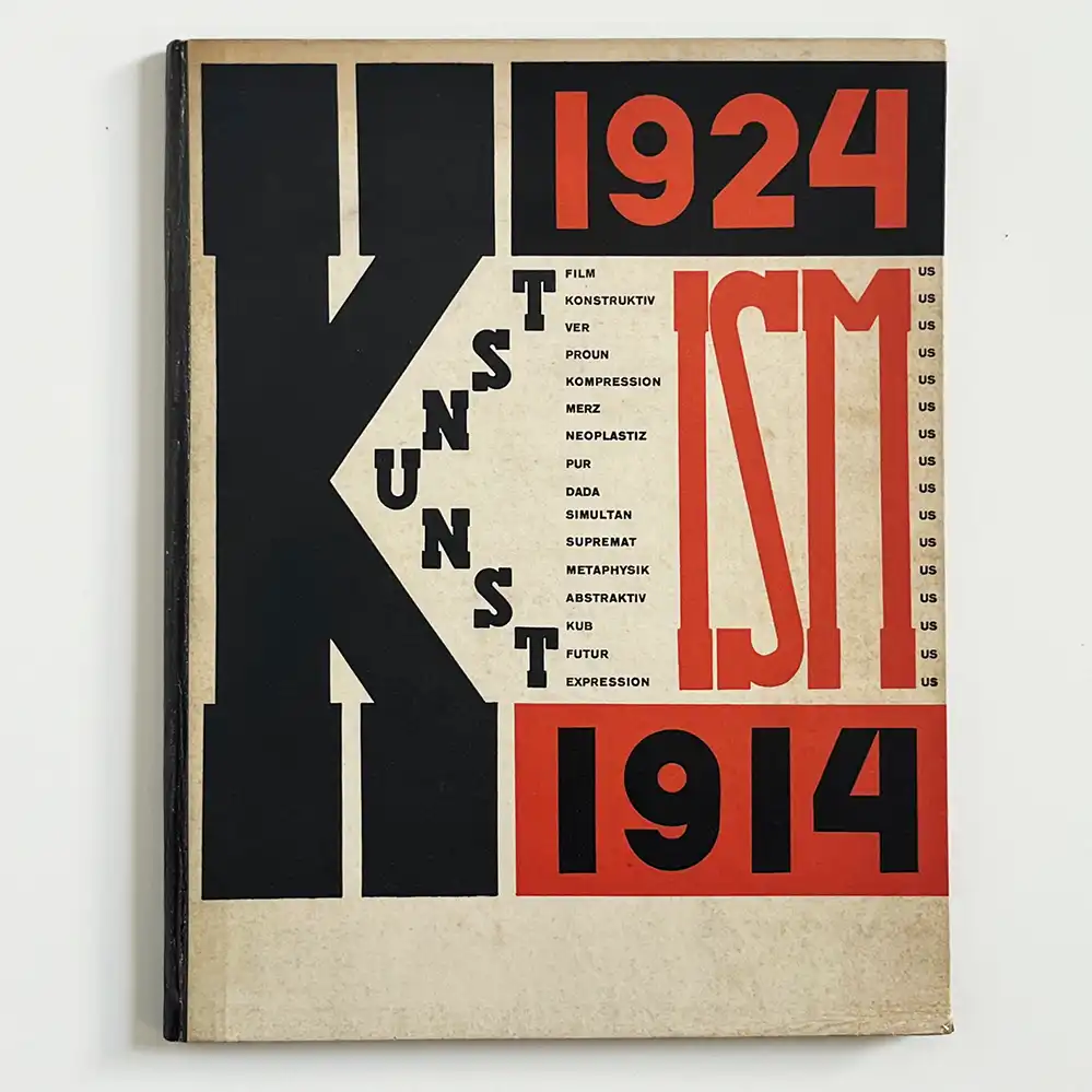 1925 erschien das dreisprachige Buch „Die Kunstismen 1914 - 1924” als Gemeinschaftswerk von Hans (Jean) Arp und El Lissitzky. Das Buch gilt als sehr bedeutende Streitschrift über die Kunst des frühen 20. Jahrhunderts, verantwortlich für Typographie und Layout war El Lissitzky. Vor allem die Titelgestaltung gilt als eine seiner besten typografischen Arbeiten. Die letzte Abbildung zeigt die Präsentation der Kunstismen im Arp Museum Rolandseck.