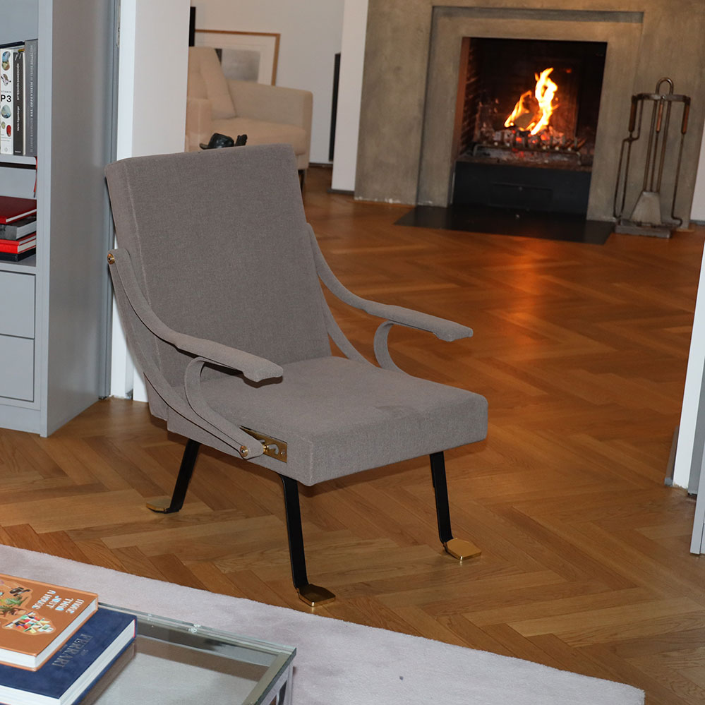 Ursprünglich für Gavina entwarf der italienische Architekt und Designer Ignazio Gardella 1957 den ungewöhnlichen Sessel Digamma mit seinen verstellbaren Armlehnen und den sogenannten Entenfüßen aus Messing. Bei Markanto ist der italienische Klassiker, heute hergestellt von Santa & Cole in Spanien, mit dem Stoff Remix von Kvadrat erhältlich. Ein passender Ottomane ist auf Anfrage zusätzlich lieferbar.