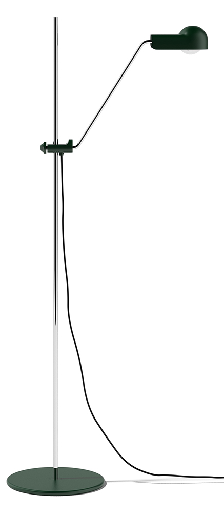 Die Domo Stehleuchte wurde 1965 von Joe Colombo entworfen. Insgesamt umfasste die Domo Serie damals drei Leuchten, die alle auf demselben Gestaltungsprinzip basierten. Die Stehleuchte ist nicht nur höhenverstellbar, sondern kann am Reflektor noch individuell justiert werden. 2024 legte Krakter die Leuchte in drei neuen Farben auf, die Stahlstange ist nun auch verchromt.
