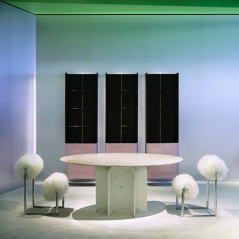 1971 entwarf die Architektin und Künstlerin Nanda Vigo den ikonischen Stuhl Due Più, der 2023 von Acerbis zur Möbelmesse in Mailand neu präsentiert wurde. Wie kaum ein anderes Möbel wurde der skulpturale Stuhl von den Besuchern bestaunt, zahlreiche Influrencer nutzten ihn direkt für ein Messefoto... Gedacht war der Entwurf von Nanda Vigo dabei als ein Manifest, eine Synthese ihrer beiden Seelen: dem Esprit de géométrie - der sich in der minimalen Metallstruktur zeigt, die das Licht reflektiert, und dem exzentrischen Pioniergeist. Ein überraschendes und rätselhaftes Objekt mit einer einzigartigen Physiognomie durch die Verwendung von zwei Rollen, die zu schweben scheinen. Auch wenn das Äußere das Gegenteil vermuten lässt, überzeugt der Stuhl durch Ergonomie und Komfort in allen drei Nutzungsmodi (normales Sitzen, seitliches Sitzen mit einem Arm auf der oberen Rolle und umgekehrtes Sitzen, bei man dem die Rollenlehne zur perfekten Stütze für die Unterarme wird).