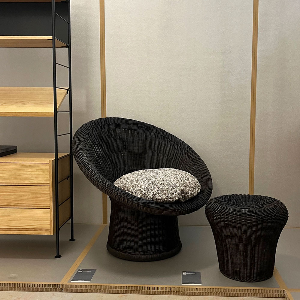 Der Hocker E14 von Egon Eiermann wird heute von Richard Lampert produziert und ist die passende Ergänzung zu seinem berühmten Korbsessel E10. Dieser Rattansessel wurde erstmals 1949 bei der Ausstellung Wie Wohnen in Karlsruhe vorgestellt und später von dem Architekten für den Deutschen Pavillon zur Weltausstellung in Brüssel verwendet. Im Laufe der Zeit entwarf Eiermann noch zahlreiche weitere Möbel und Varianten aus diesem leichten Material.