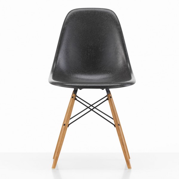 A Chair of the Century: Seit 2019 sind die Eames Chairs wieder mit einer Fiberglasschale bei Vitra erhältlich! Dazu zählt natürlich das beliebte Modell DSW (Dining Height Side Chair Wood Base) mit dem Holzuntergestell in Ahorn oder Esche. Die Anmutung der neuen Fiberglasschale entspricht dabei den früheren Eames Stühlen aus den 1950er Jahren, die Fiberglasschale besteht aus einem glasfaserverstärktem Polyester (Fiberglas). Das Material zeichnet sich durch eine leichte Transparenz und Textur aus und erfreut noch heute Kenner und Sammler. Die Fiberglasschale des DSW ist in sieben Farben erhältlich, die sich von den historischen original Fiberglasfarben der damaligen Zenith Plastics / Herman Miller Produktion der 1950er Jahre ableiten. Der Stuhl ist mit vier verschiedene Untergestellen (3 x Ahorn und 1 x Esche) erhältlich.