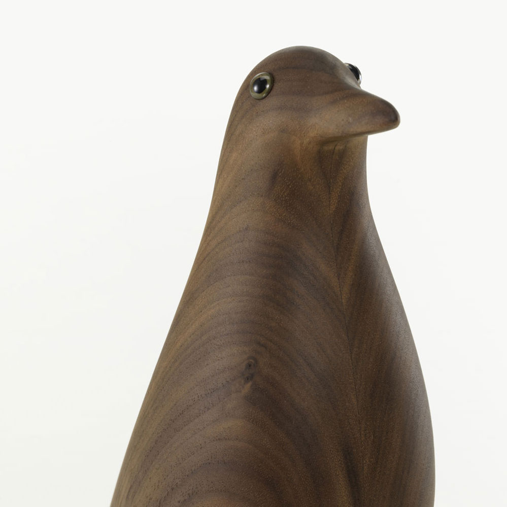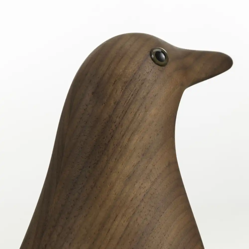 Zum Herbst 2025 legte Vitra den Eames House Bird in europäischen dunklem Nussbaum auf. Bei der neuen Version ist die Holzmaserung gut sichtbar, was der Figur einen lebendigen Charakter verleiht.