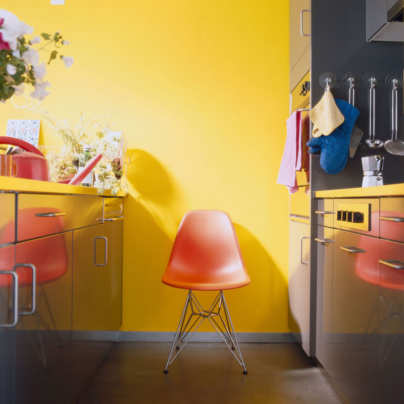 Der Eames Plastic Chair DSR mit seinem charakteristischen Eiffel-Tower-Untergestell gehört zu den ersten Kunststoffmöbeln überhaupt und ist einer der beliebtesten Designklassiker. Erhältlich ist der Eames Designklassiker mit einer Sitzschale in 14 Farben, das Gestell ist wahlweise verchromt oder schwarz und weiß pulverbeschichtet. Die Abkürzung DSR steht für Dining Height Side Chair Rode Base.