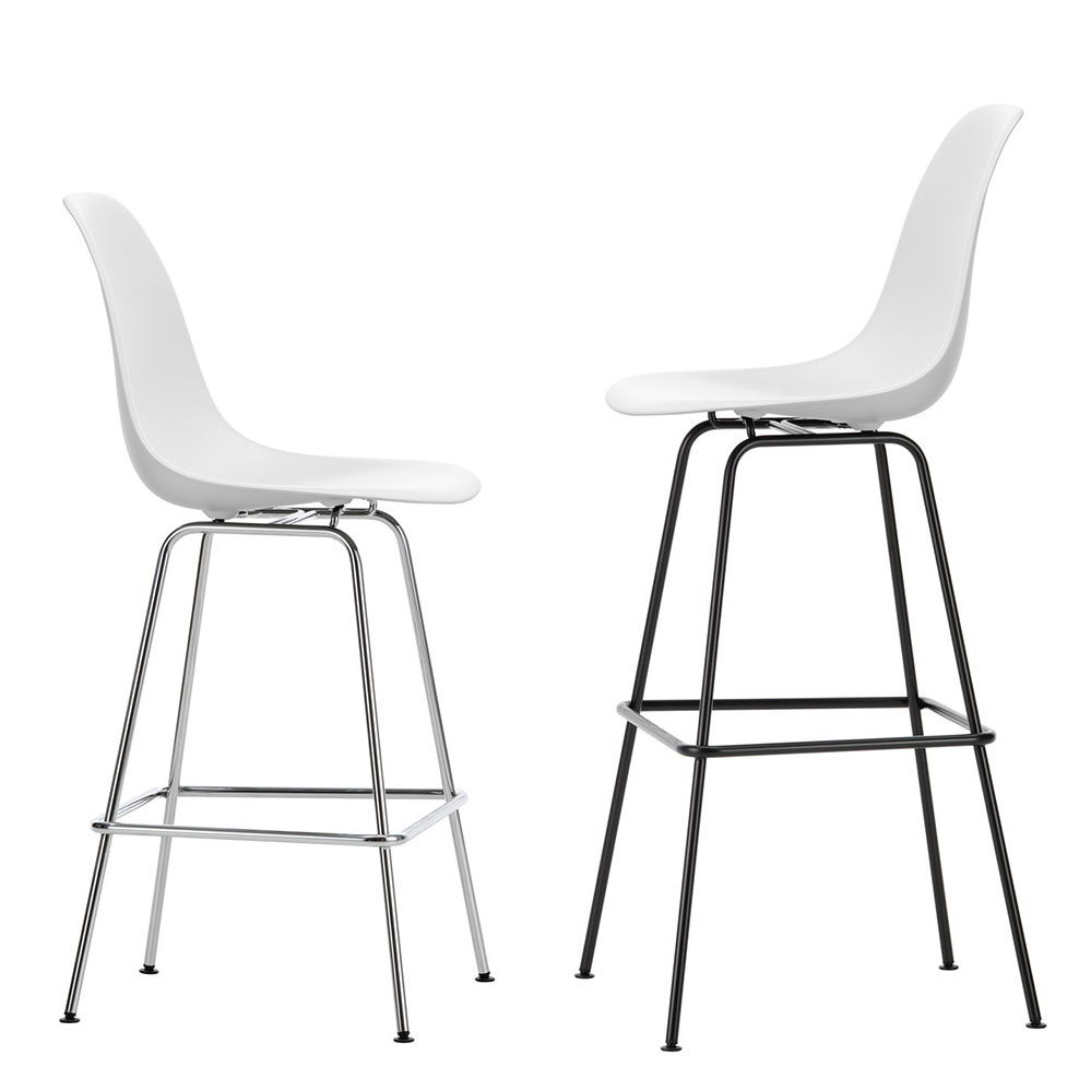 2024 legte Vitra den Eames Barstuhl aus Polypropylen in 15 Farben und zwei verschiedenen Sitzhöhen auf, das Gestell ist wahlweise verchromt oder schwarz pulverbeschichtet. Auf Anfrage ist der Eames Plastic Stool auch mit Sitzpolster oder Vollpolsterung bei Vitra erhältlich.