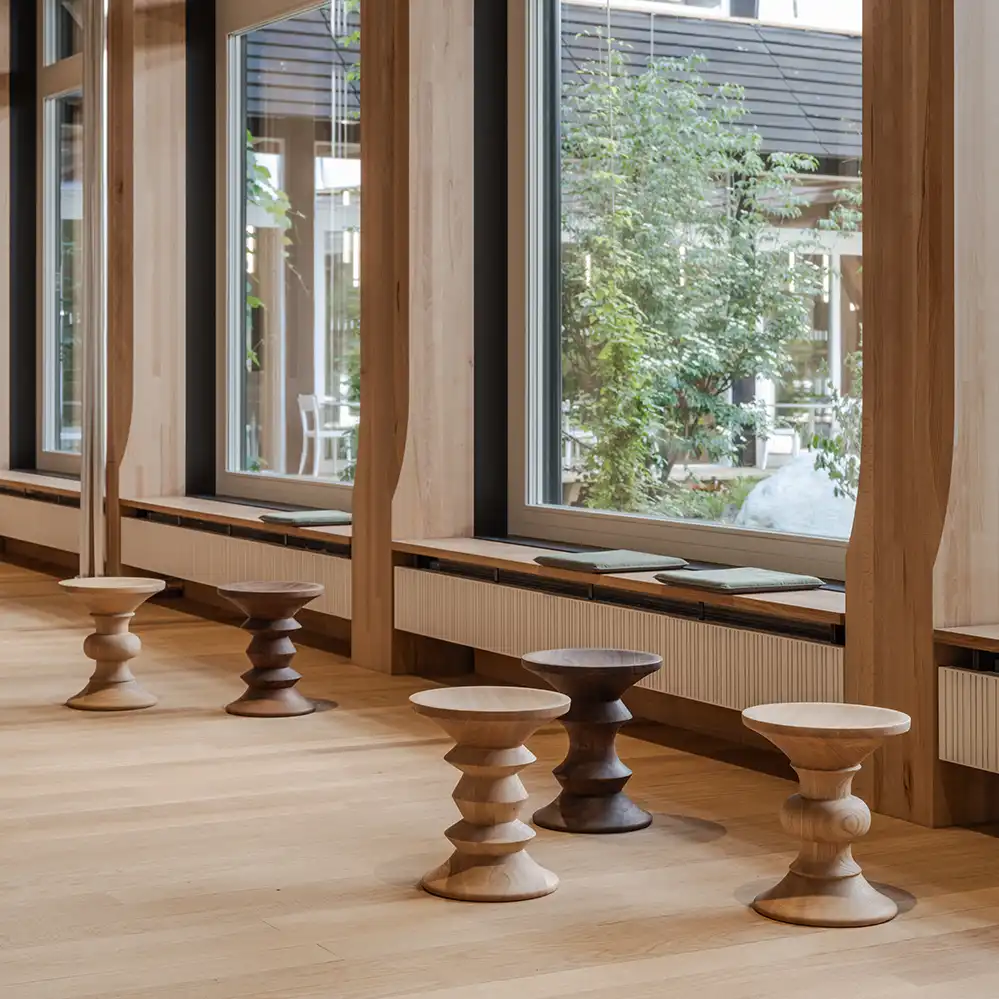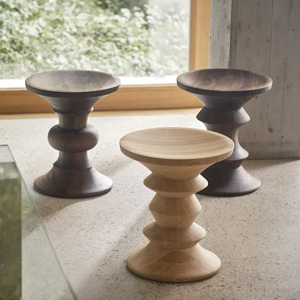 2025 legte Vitra die Eames Stools in neuen Varianten auf - als Massivholz steht wahlweise eine helle Kastanie oder dunkler Nussbaum zur Verfügung.