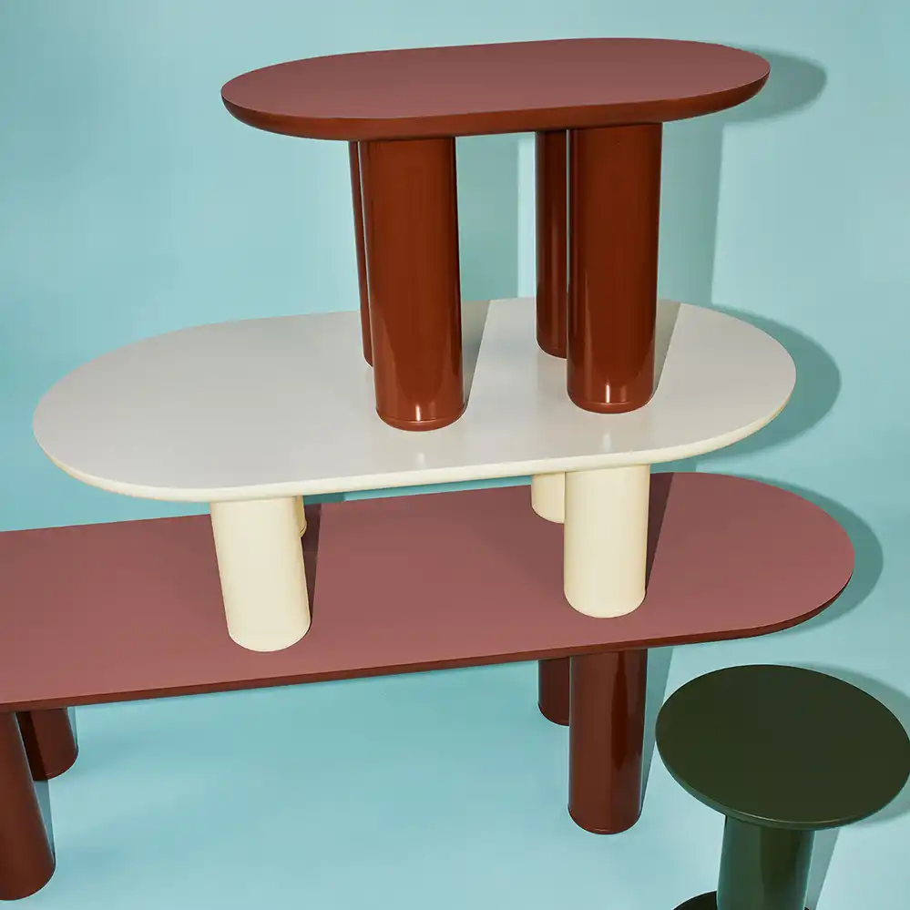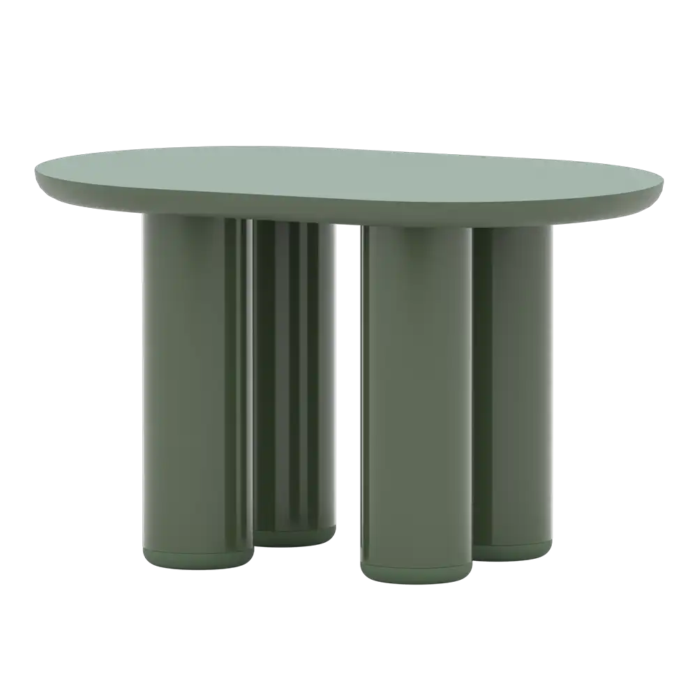Der Eclipso Coffee Table wurde von Jaime Hayon als Teil der gleichnamigen Kollektion für BD Barcelona entworfen. Inspiriert von organischen Formen und mit einem Hauch tierischer Verspieltheit gestaltet, wirkt der Tisch zugleich leicht und skulptural – ein typisches Merkmal von Hayóns Handschrift. Die konisch zulaufenden Beine aus 95 % recyceltem Aluminium erinnern an abstrahierte Kreaturenformen und tragen eine 3 cm starke MDF-Tischplatte, die mit dem innovativen Material FENIX beschichtet ist – matt, robust und unempfindlich gegenüber Fingerabdrücken. Der Eclipso ist in drei Größen (180, 110 und 70 cm), jeweils zwei Höhen (42 und 32 cm) sowie in drei Farben Ton in Ton (Grün, Oxidrot, Beige) erhältlich.