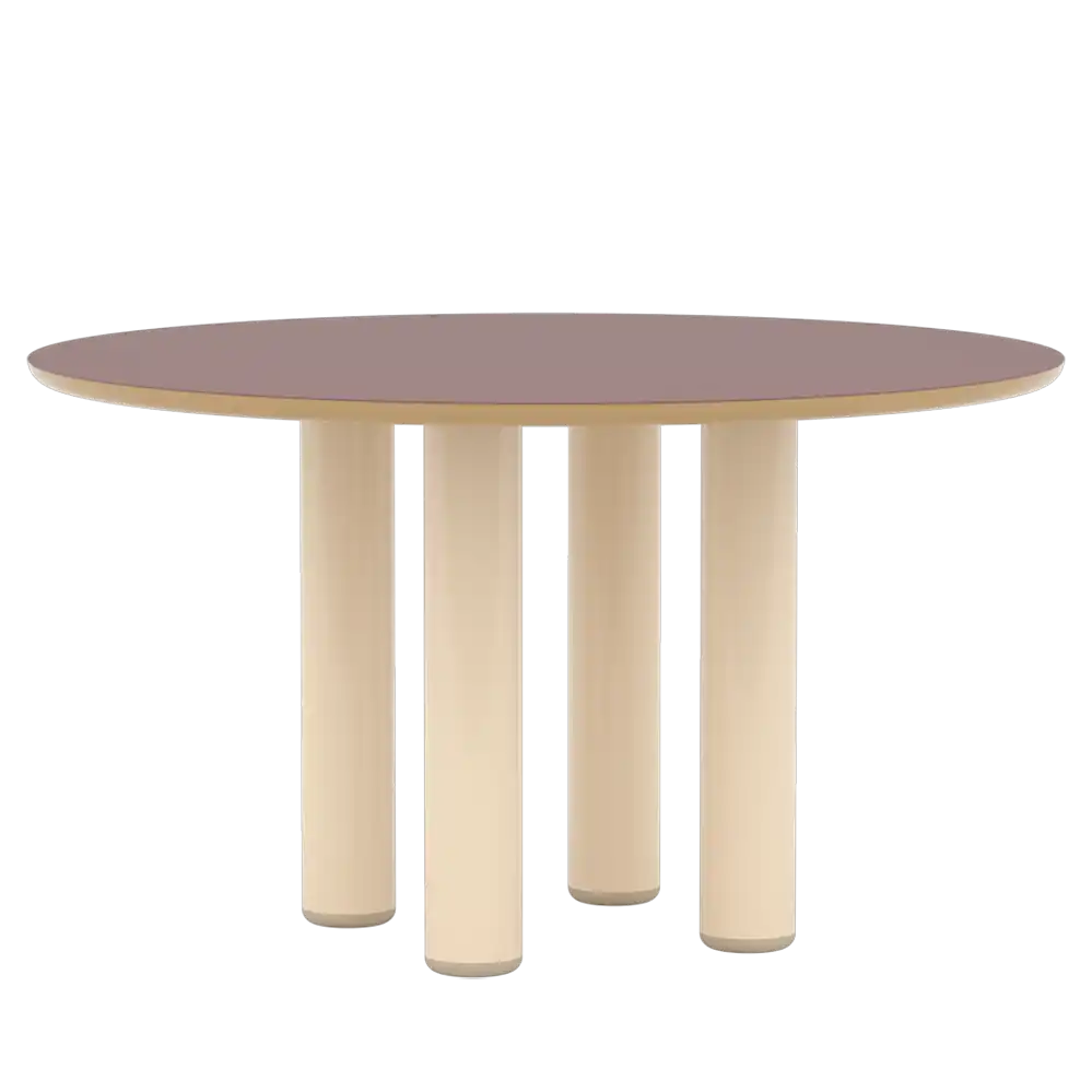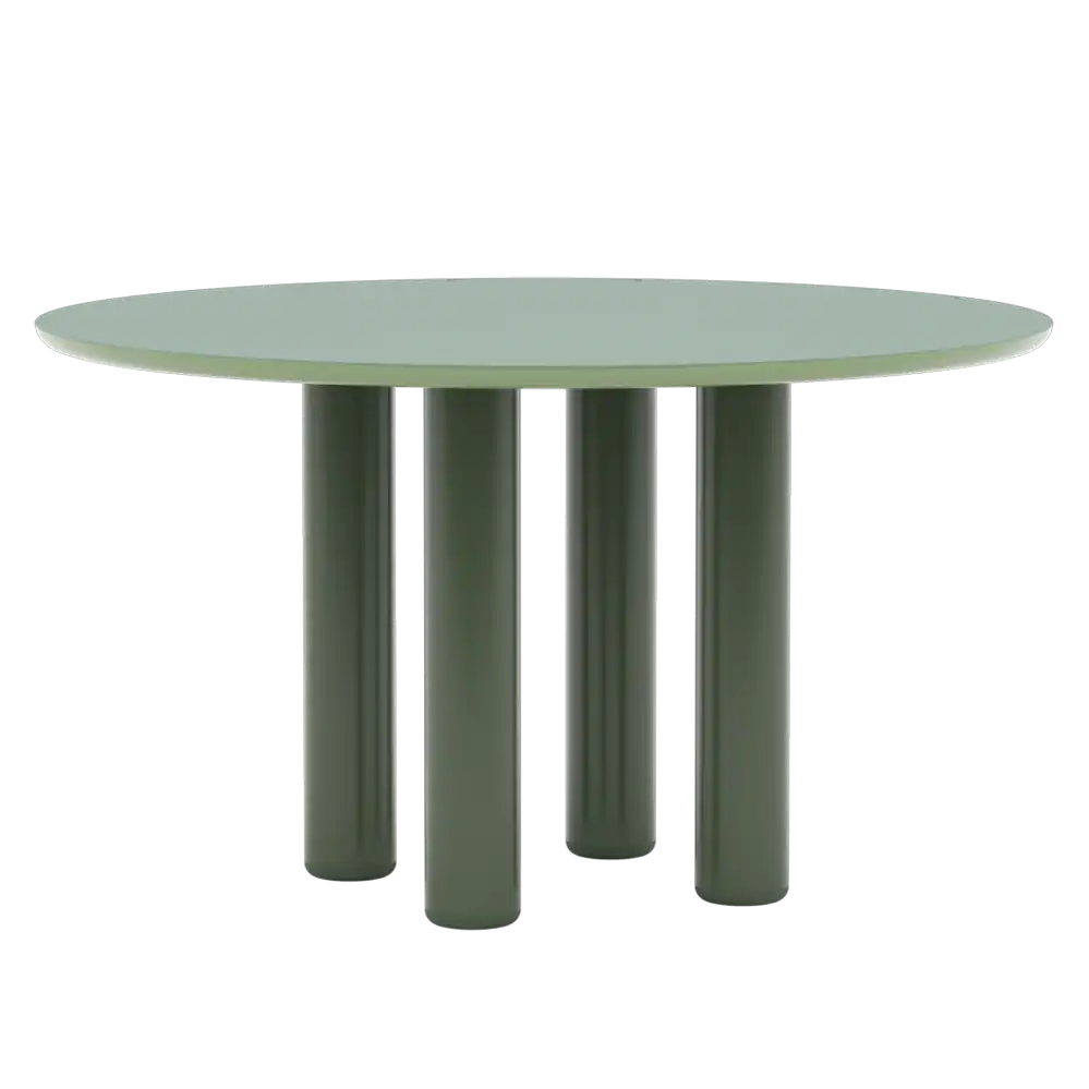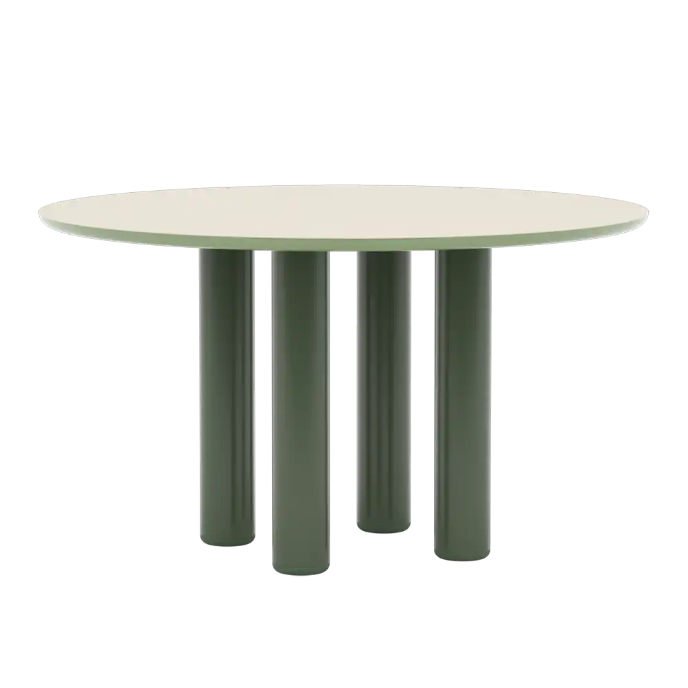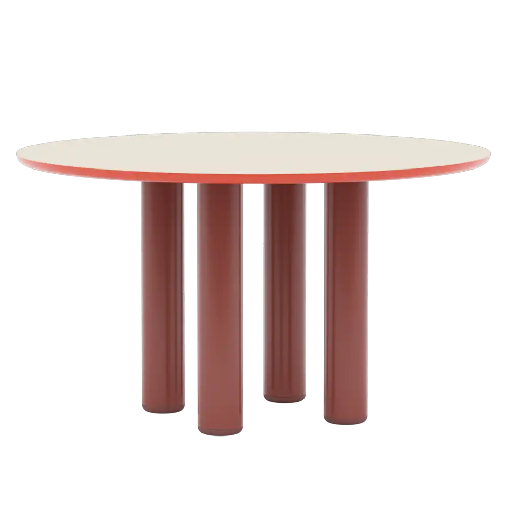 Der runde Eclipso Esstisch wurde von Jaime Hayon als Teil der vielseitigen Eclipso-Serie für bd Barcelona entworfen. Die konisch zulaufenden Beine aus 95 % recyceltem Aluminium erinnern an abstrahierte Kreaturenformen und tragen eine 3 cm starke MDF-Tischplatte, die mit dem innovativen Material FENIX beschichtet ist – matt, robust und unempfindlich gegenüber Fingerabdrücken. Der Tisch kann dabei wahlweise in Ton in Ton oder kombinierten Farben bestellt werden.