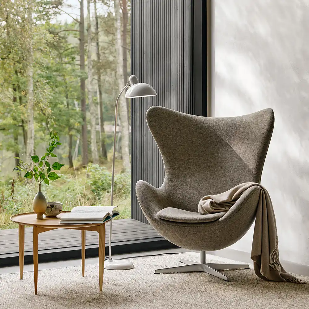 Bis Ende Februar 2026 erhalten Sie bei Kauf eines Egg Chairs in Stoff oder Leder den passenden Fußhocker gratis dazu, wir freuen uns auf Ihre Bestellung!