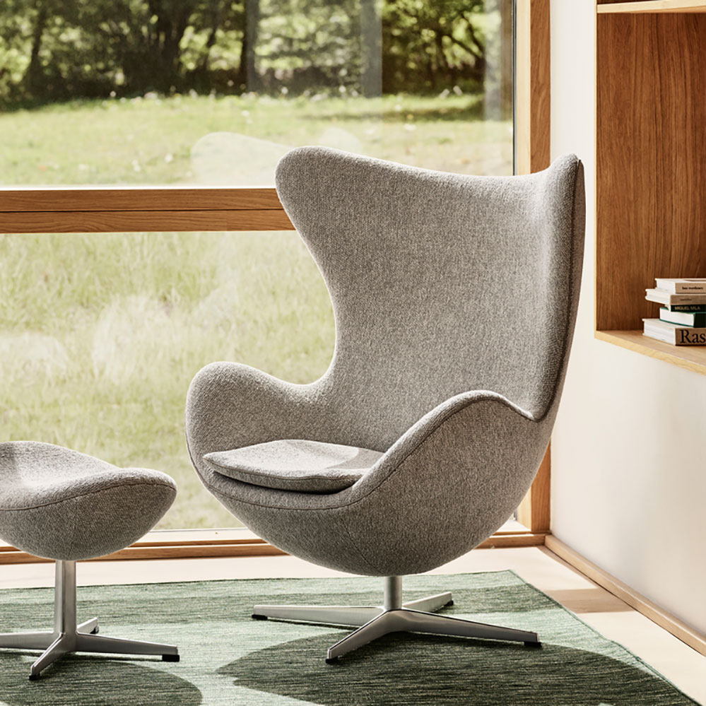 Bis Ende Februar 2026 erhalten Sie bei Kauf eines Egg Chairs in Stoff oder Leder den passenden Fußhocker gratis dazu, wir freuen uns auf Ihre Bestellung!
