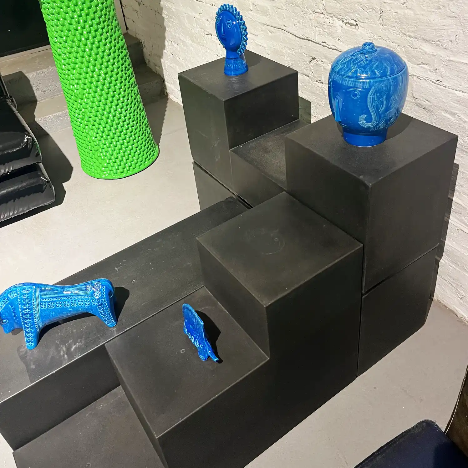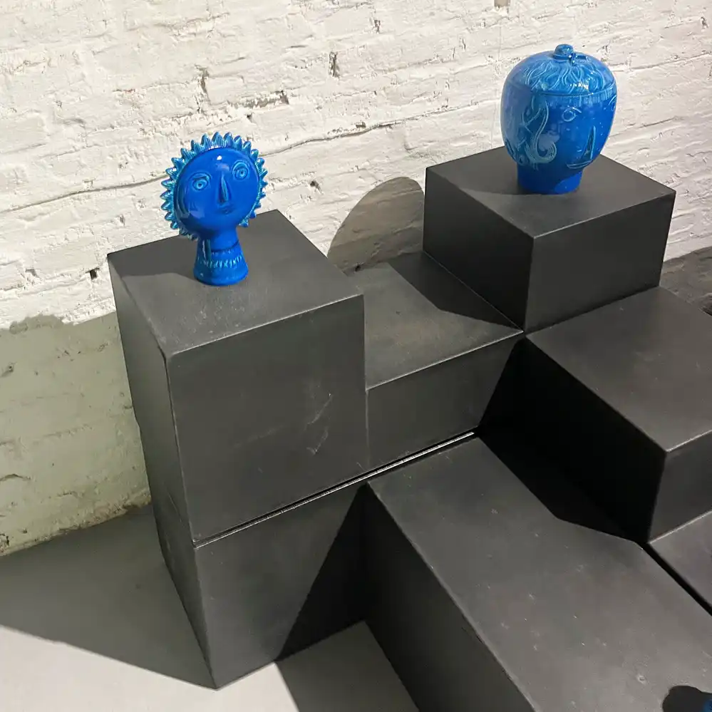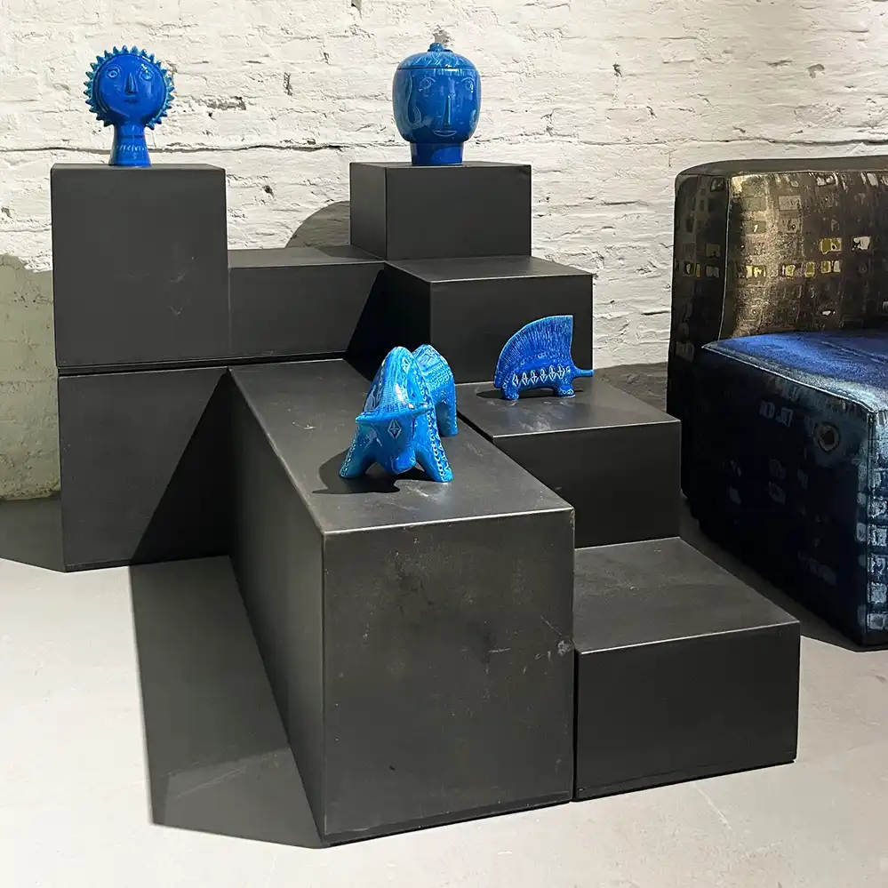 Eines unserer liebsten Modulmöbel ist das von Mario Bellini im Jahr 1968 (oder 1971?) entwickelte Gli Scacchi System für C&B Italia. Gedacht sind die einzelnen kubischen Möbel als Beistelltische oder als Sitzobjekte. Mit einer Länge von 90,5 cm und einer Breite von 30 cm können die aus Duraplum-Kunststoff bestehenden Blöcke beliebig angeordnet werden. Das Angebot besteht aus vier Einzelelementen (wie Fotos), Preis für alle vier Elemente.